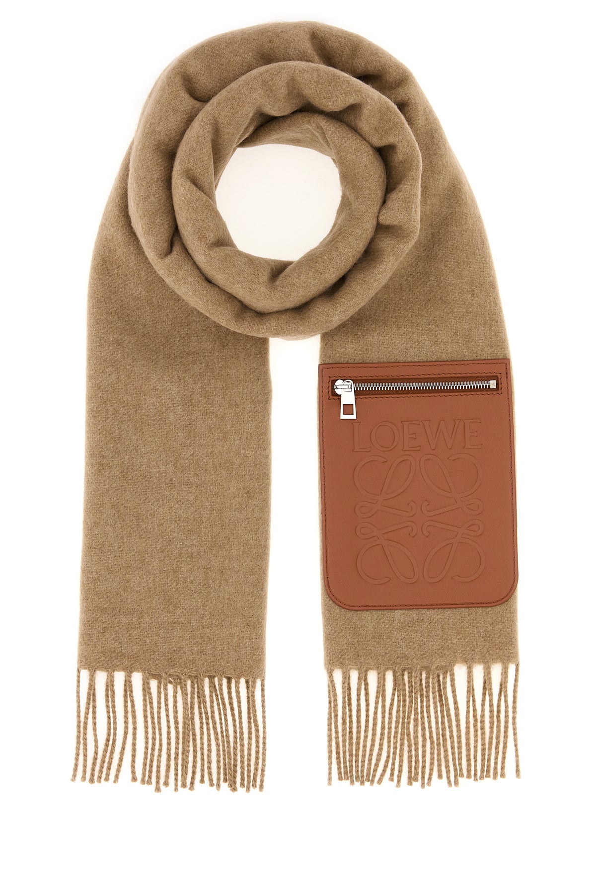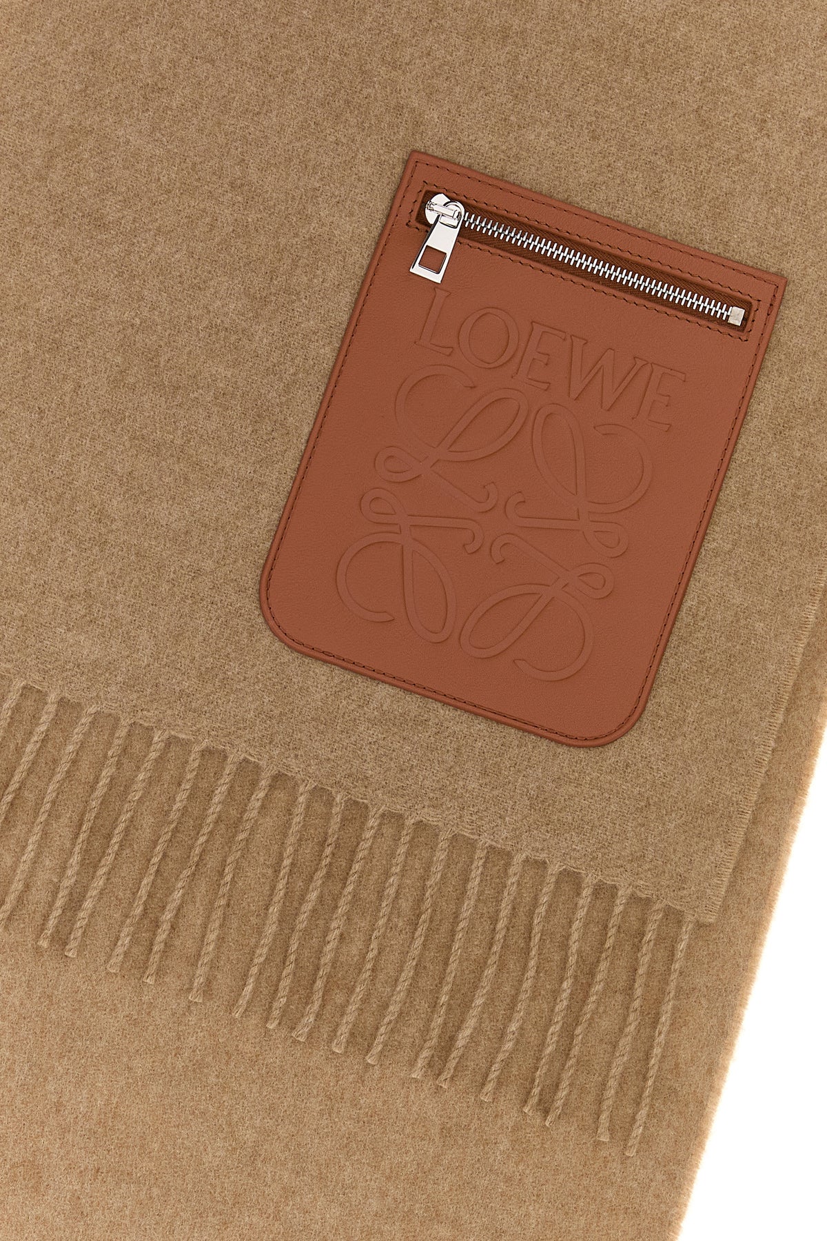 Scarf realized in wool and cashmere enriched by leather patch pocket with embossed Anagram LOEWE motif.