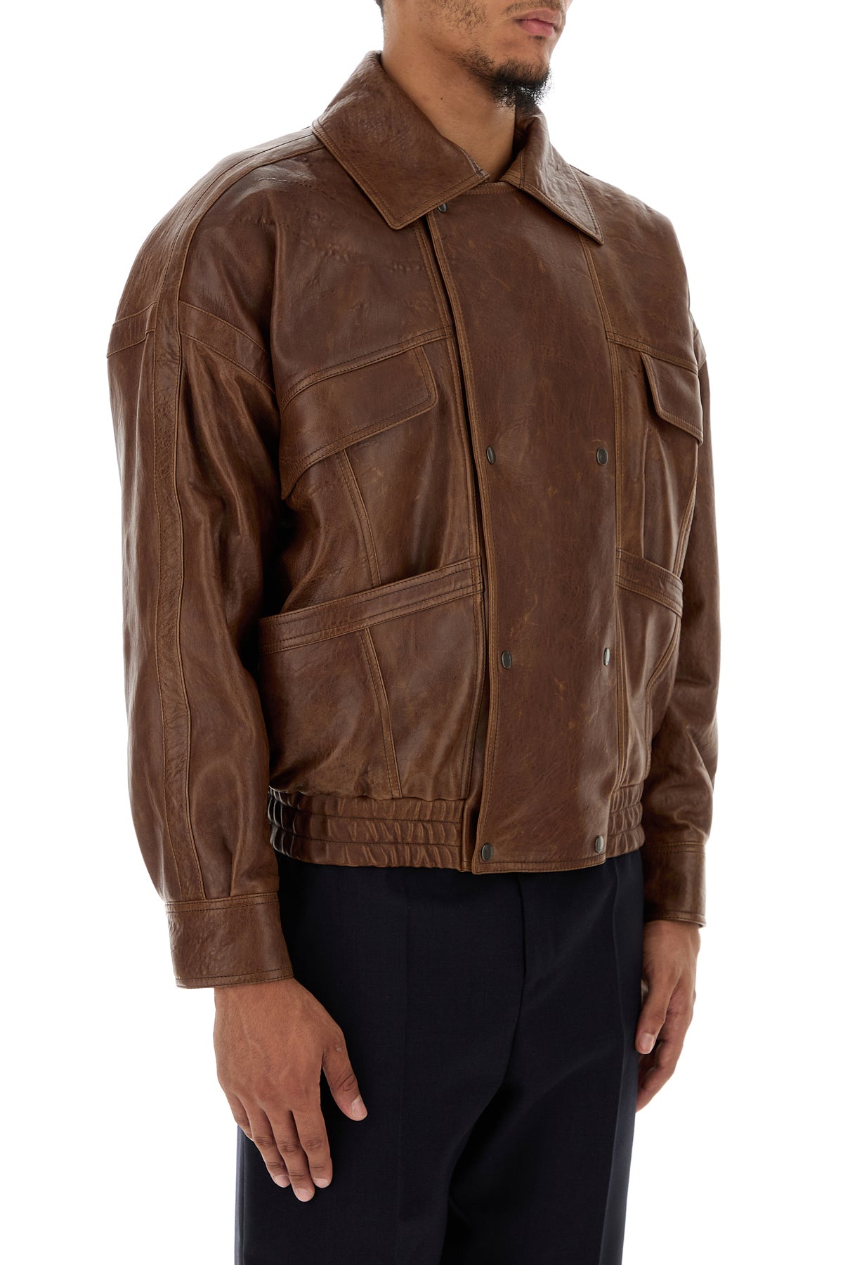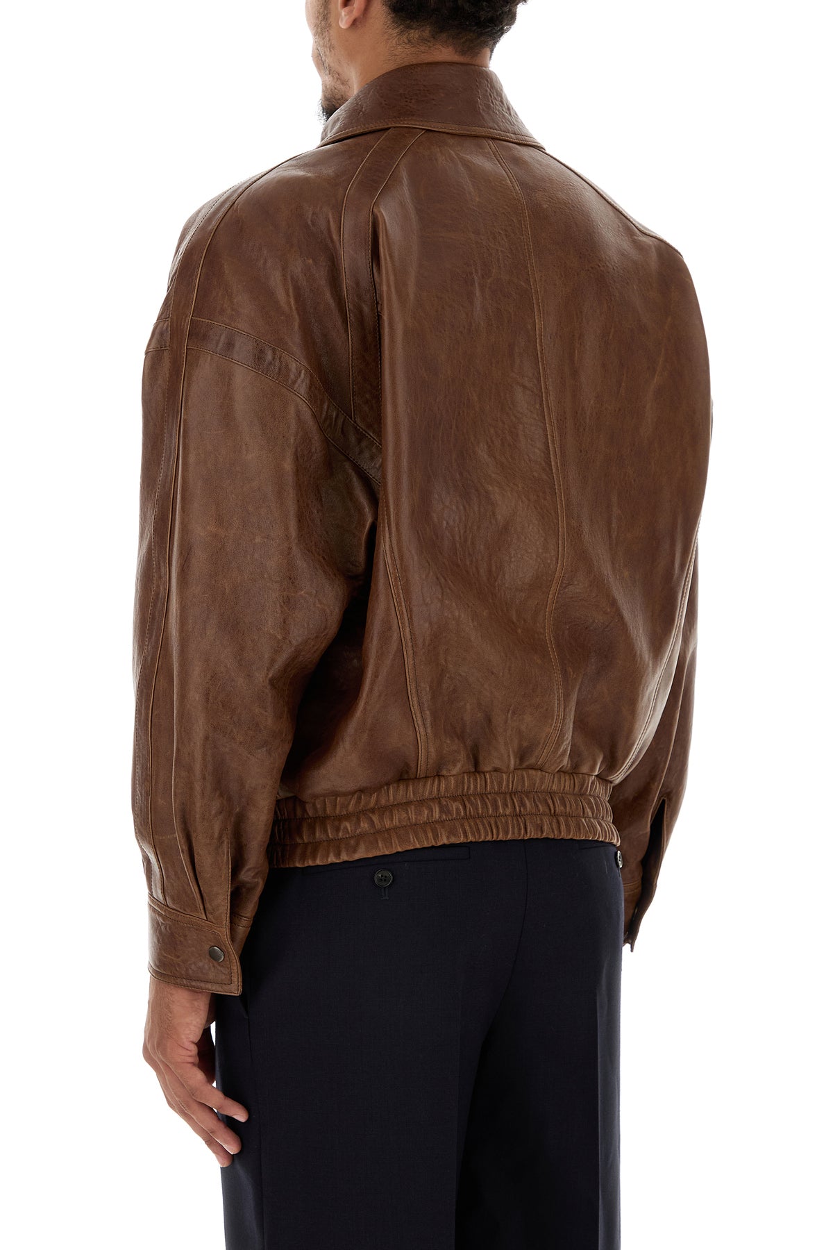 Jacket realized in lamb leather characterized by collar.