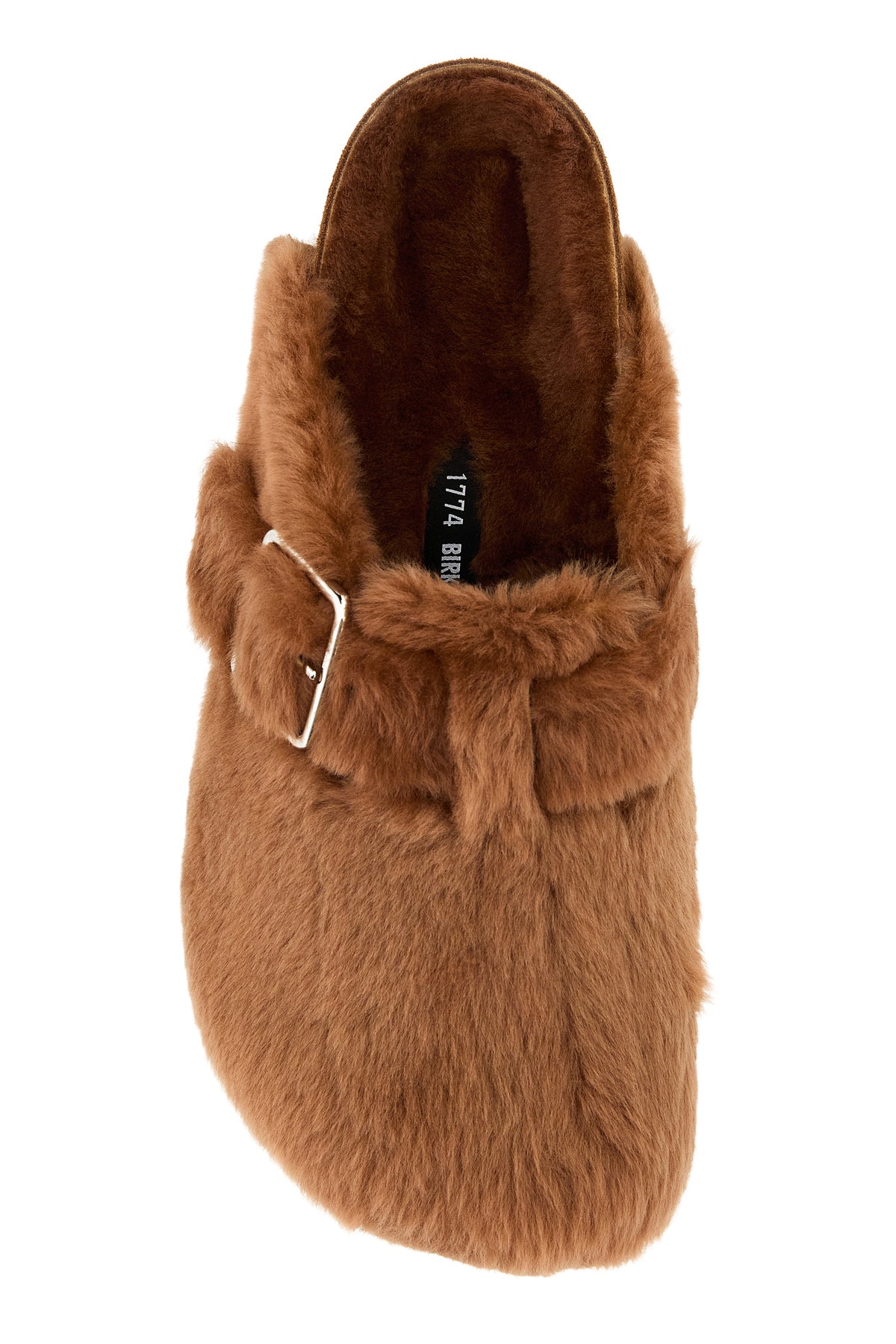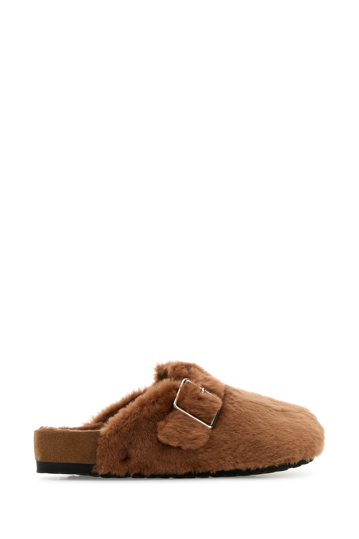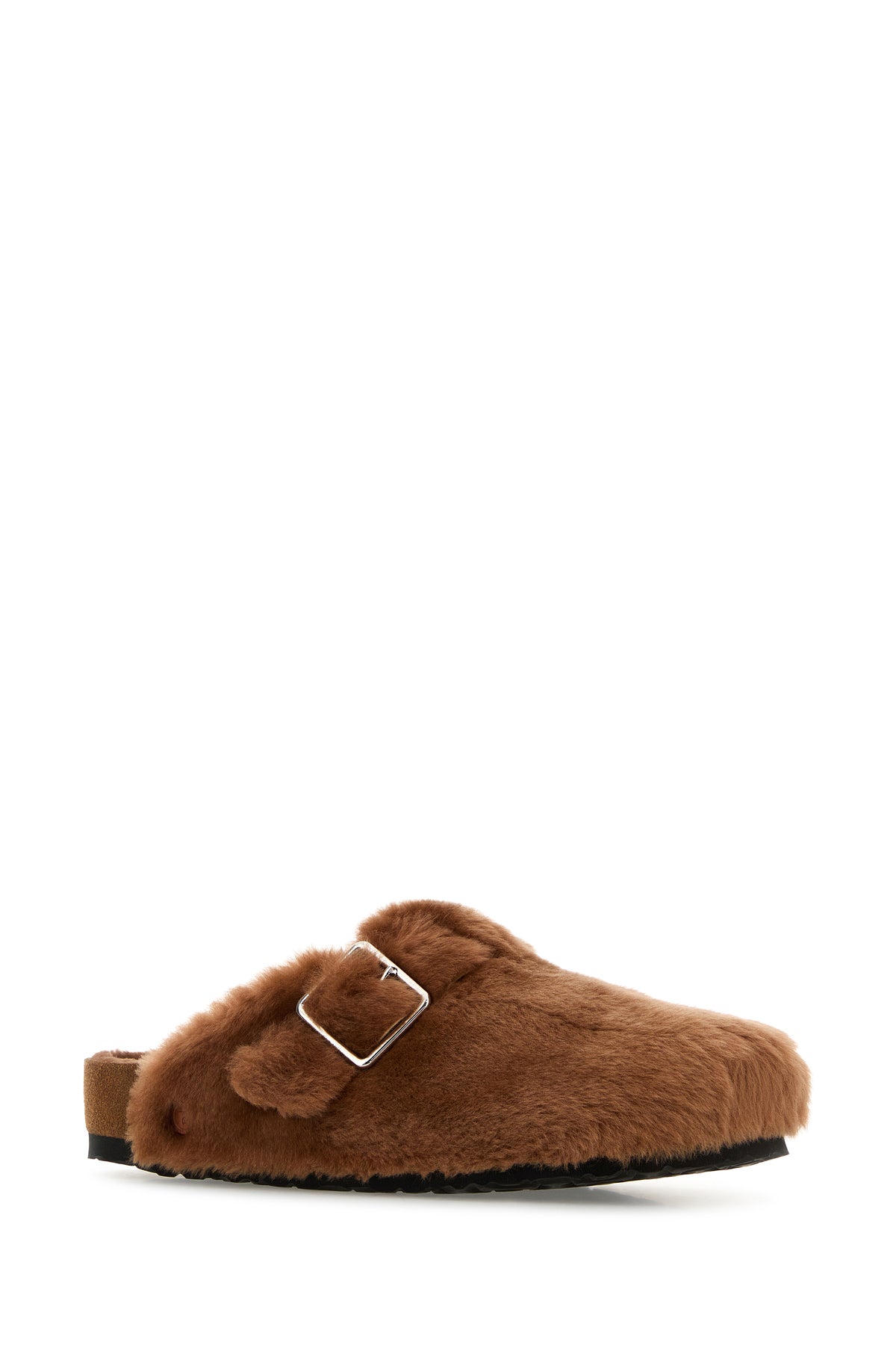 Slippers realized in shearling enriched by logoed metal detail on the side.