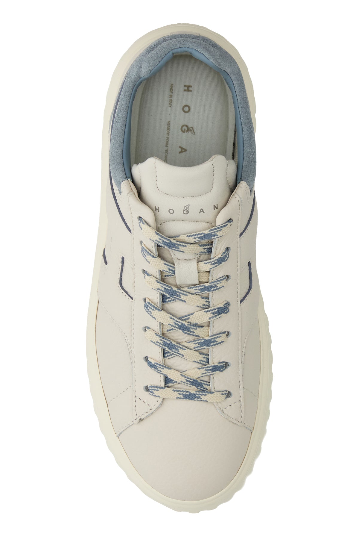 Sneakers realized in pebble leather with contrasting suede insert on the heel enriched by H patches on the sides.
