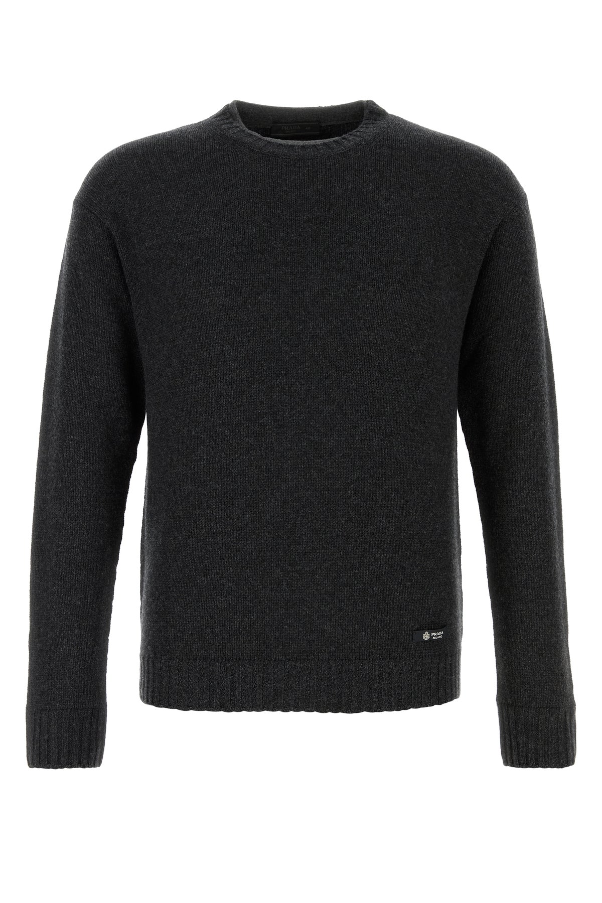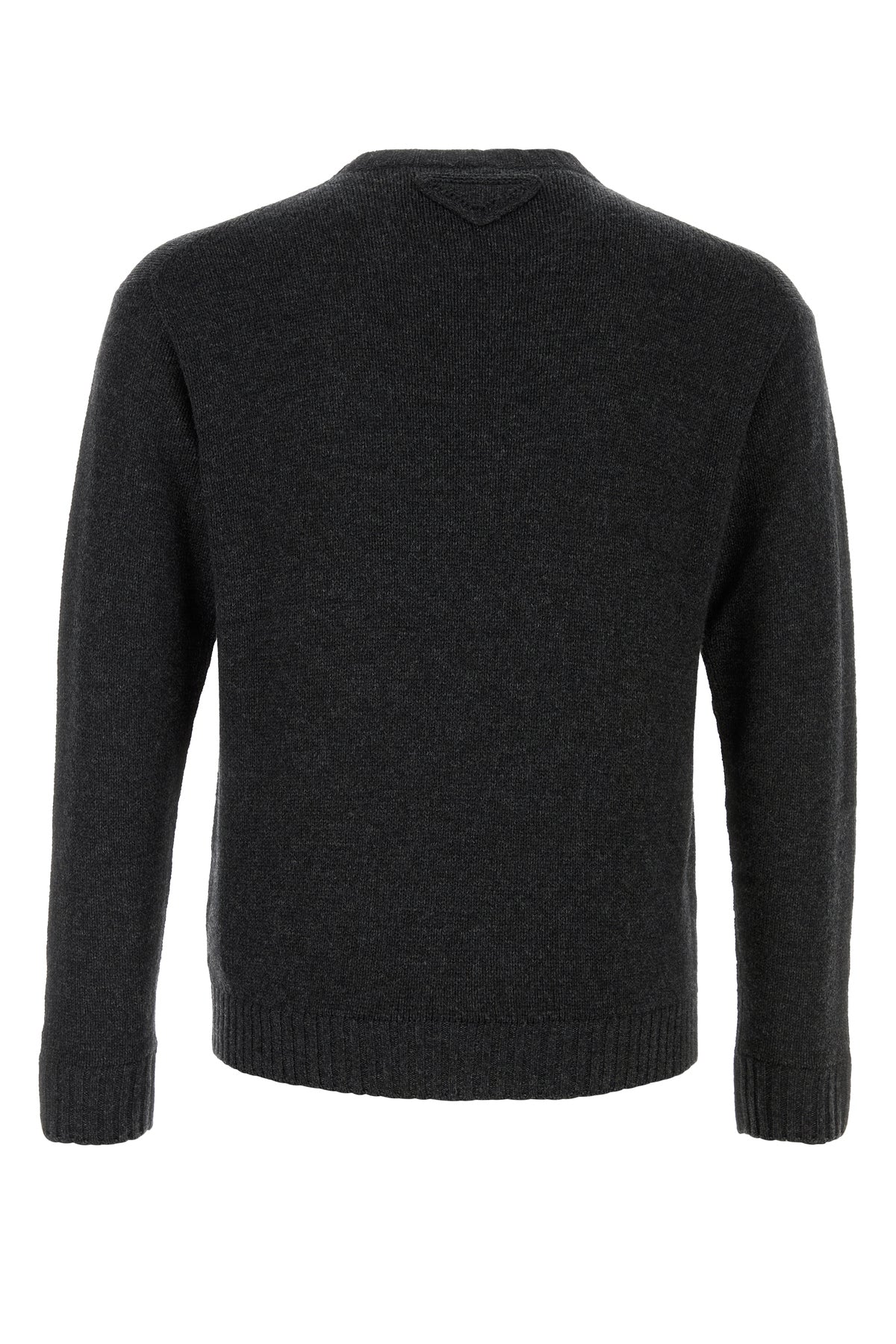 Sweater realized in cashmere and virgin wool enriched by logoed label at the front and tonal fabric iconic triangle at the back.