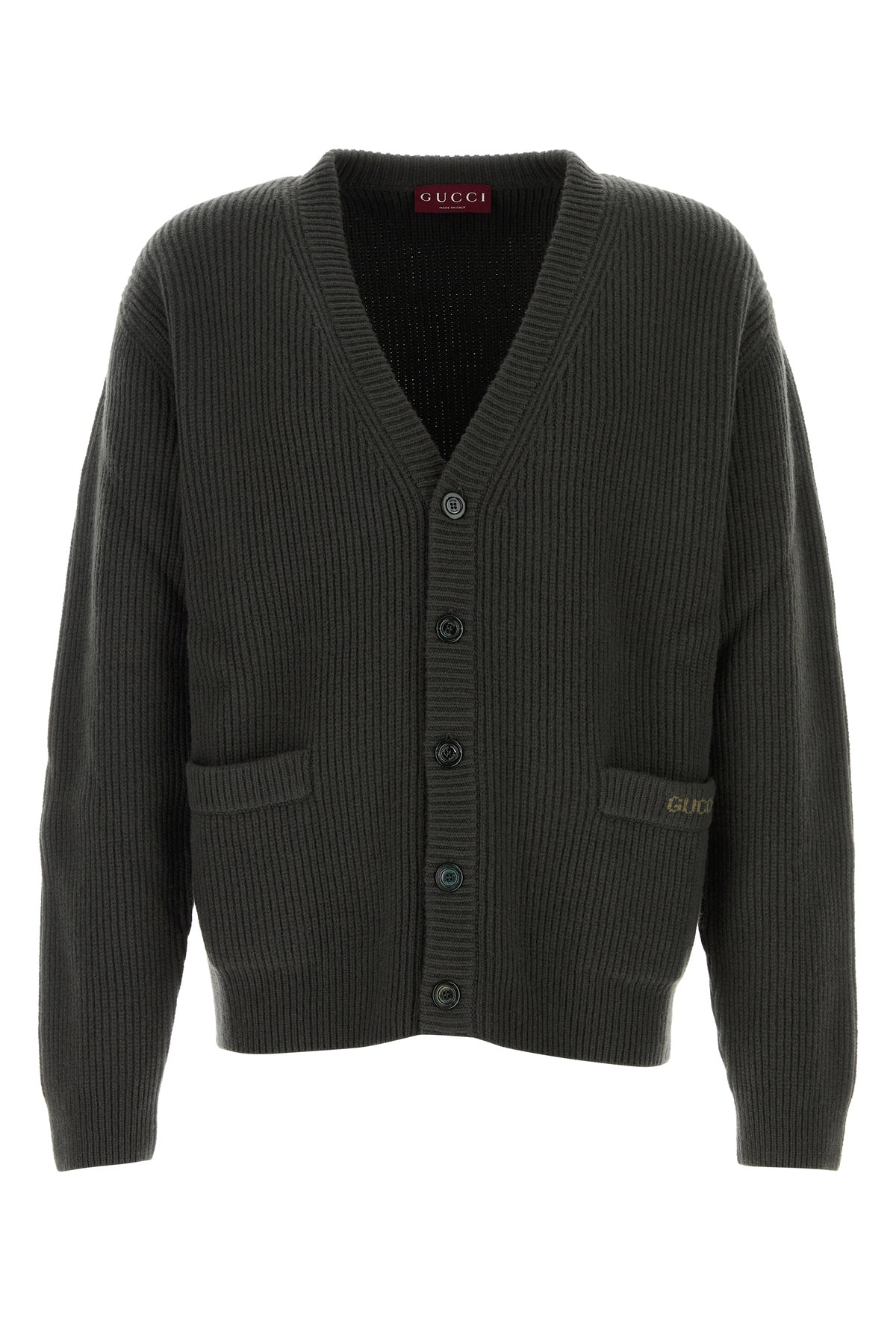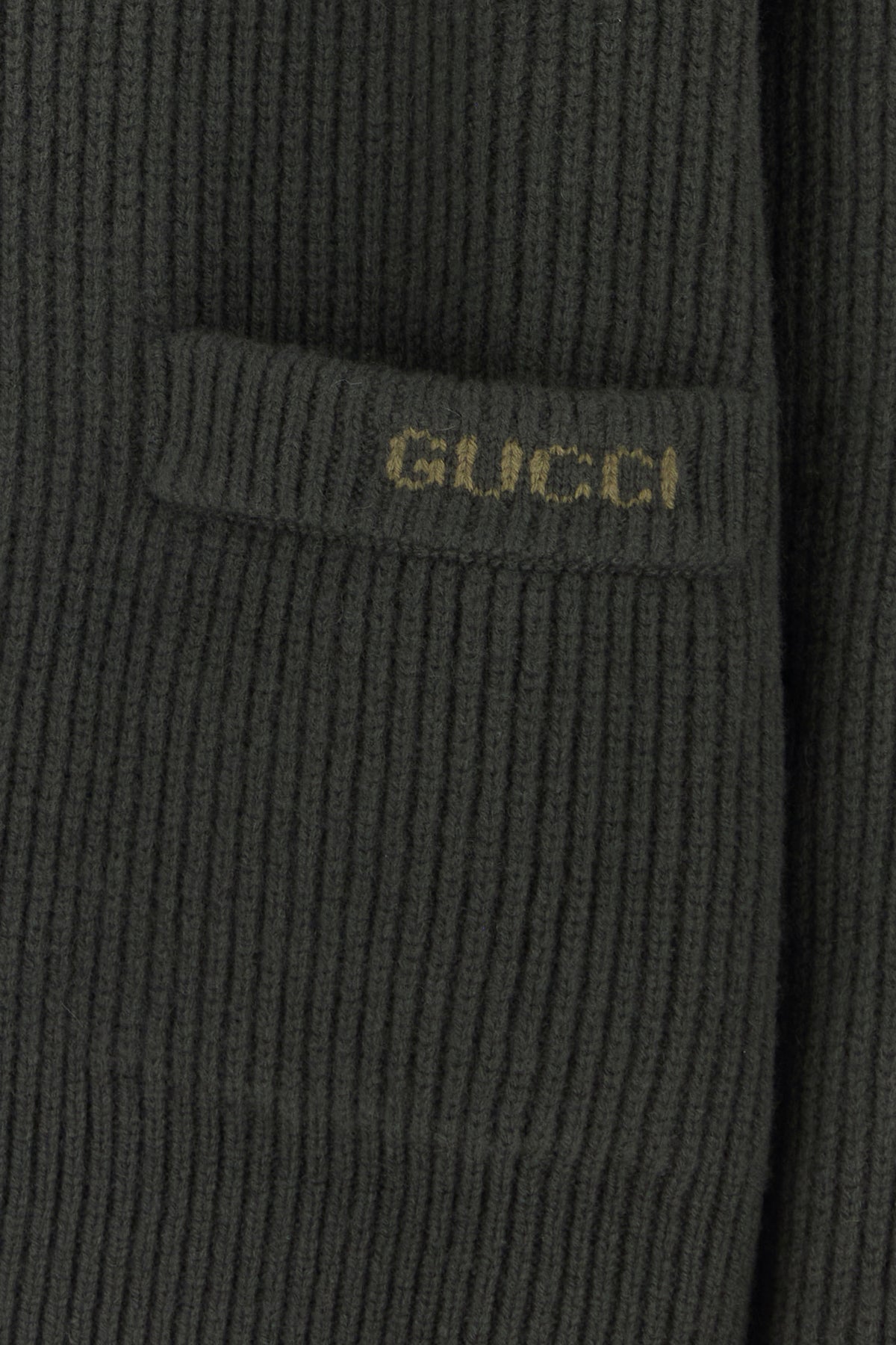 Cardigan realized in ribbed wool and cashmere characterized by contrasting Gucci embroidery at the front.