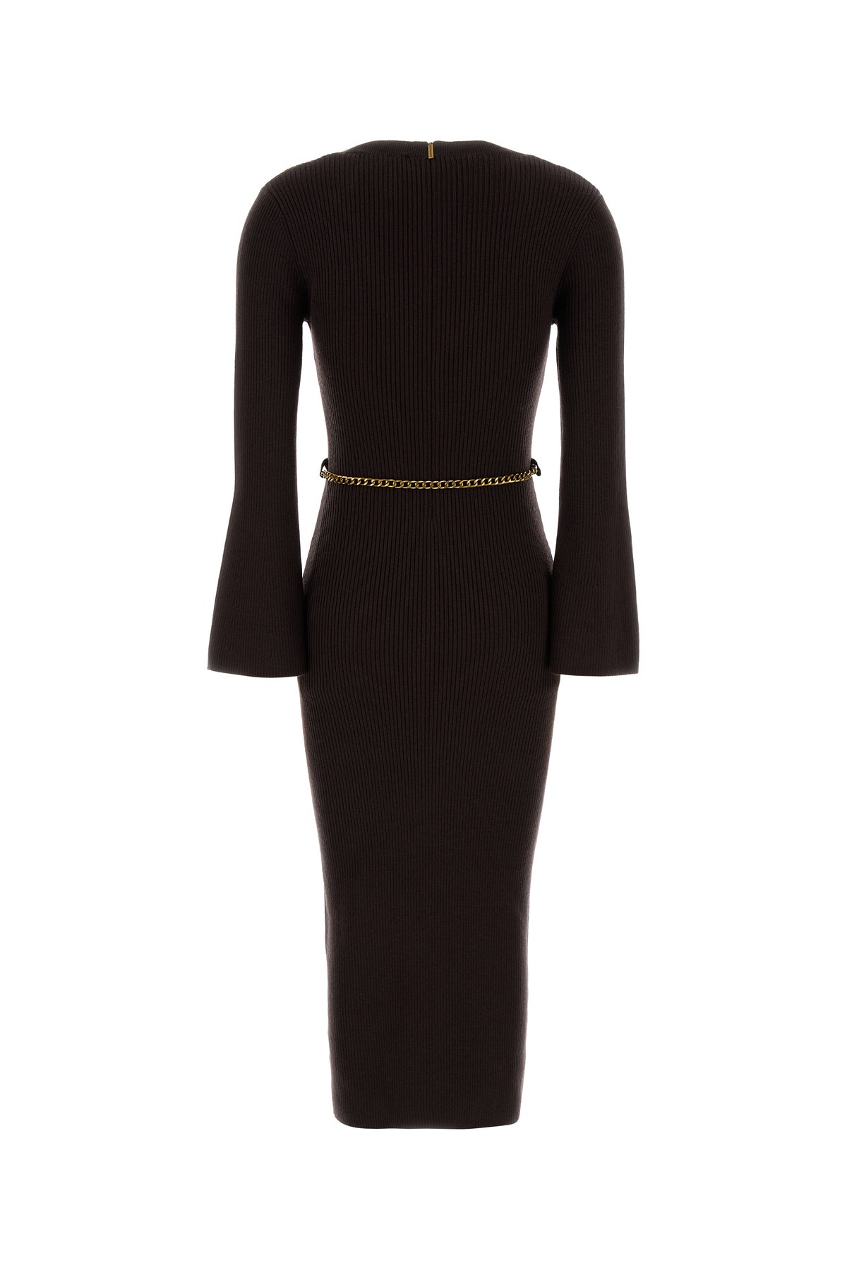 Midi-length dress realized in ribbed wool blend enriched by detachable metal chain belt.