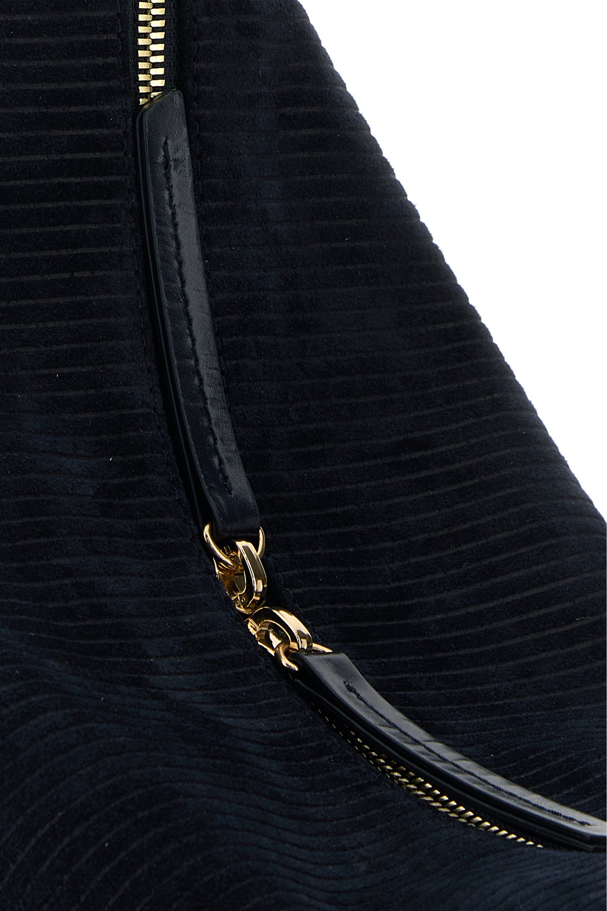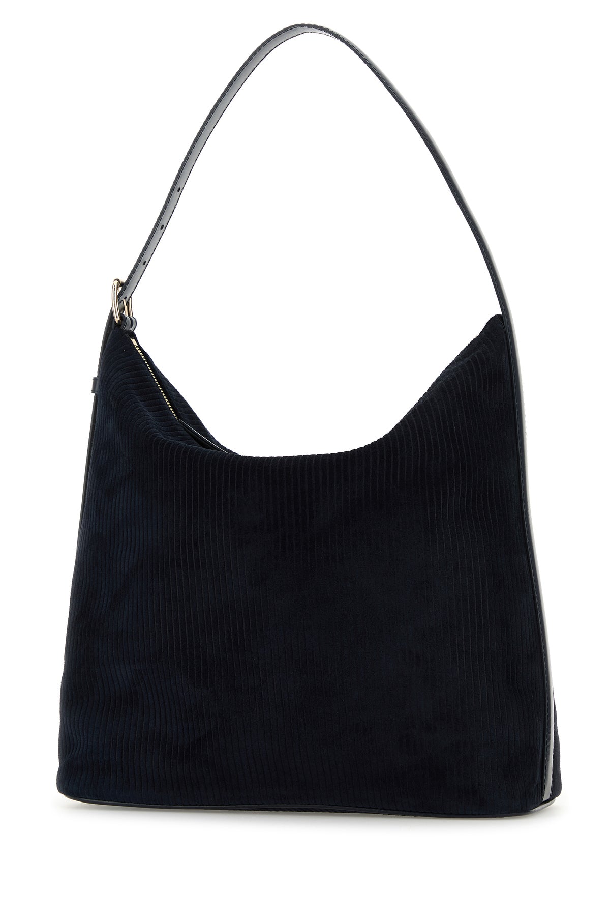 Shopping bag realized in corduroy characterized by laminated printed logo on the adjustable shoulder strap.