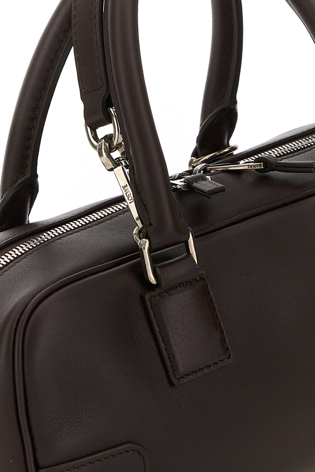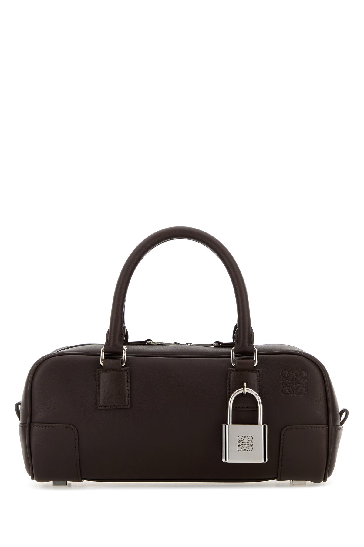 Handbag realized in pebble leather characterized by embossed Anagram motif at the front enriched by detachable metal paddock.