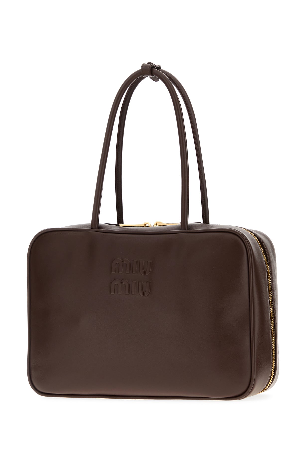 Handbag realized in smooth leather characterized by in relief logo at the front.