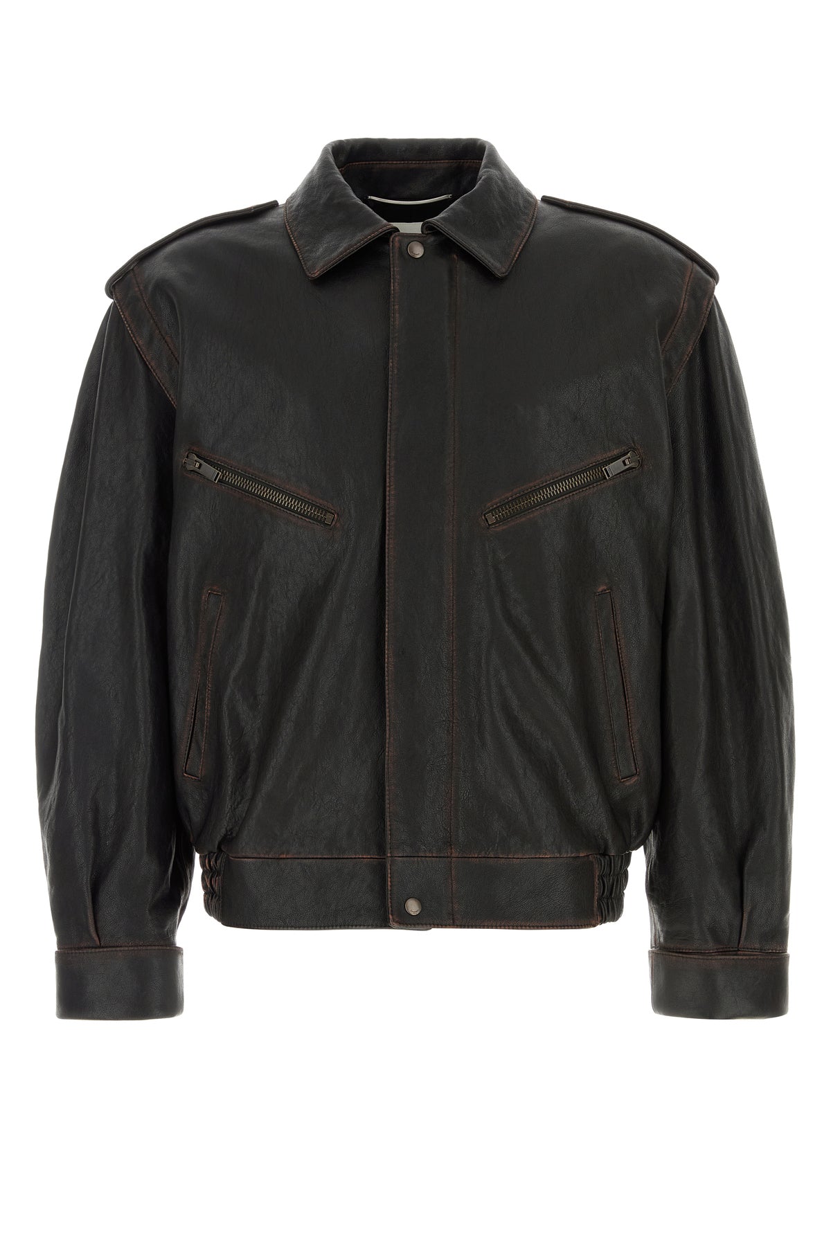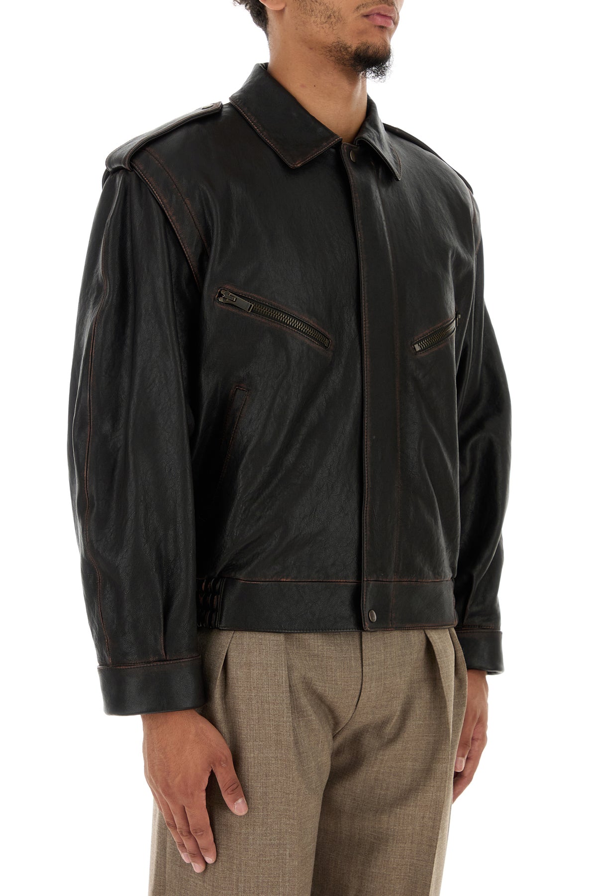 Blazer realized in vintage effect lamb leather characterized by collar.