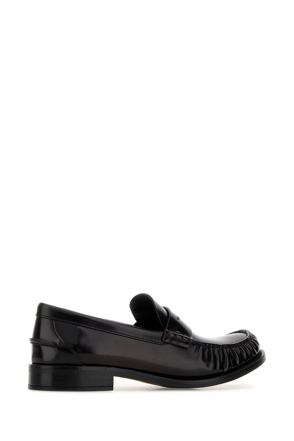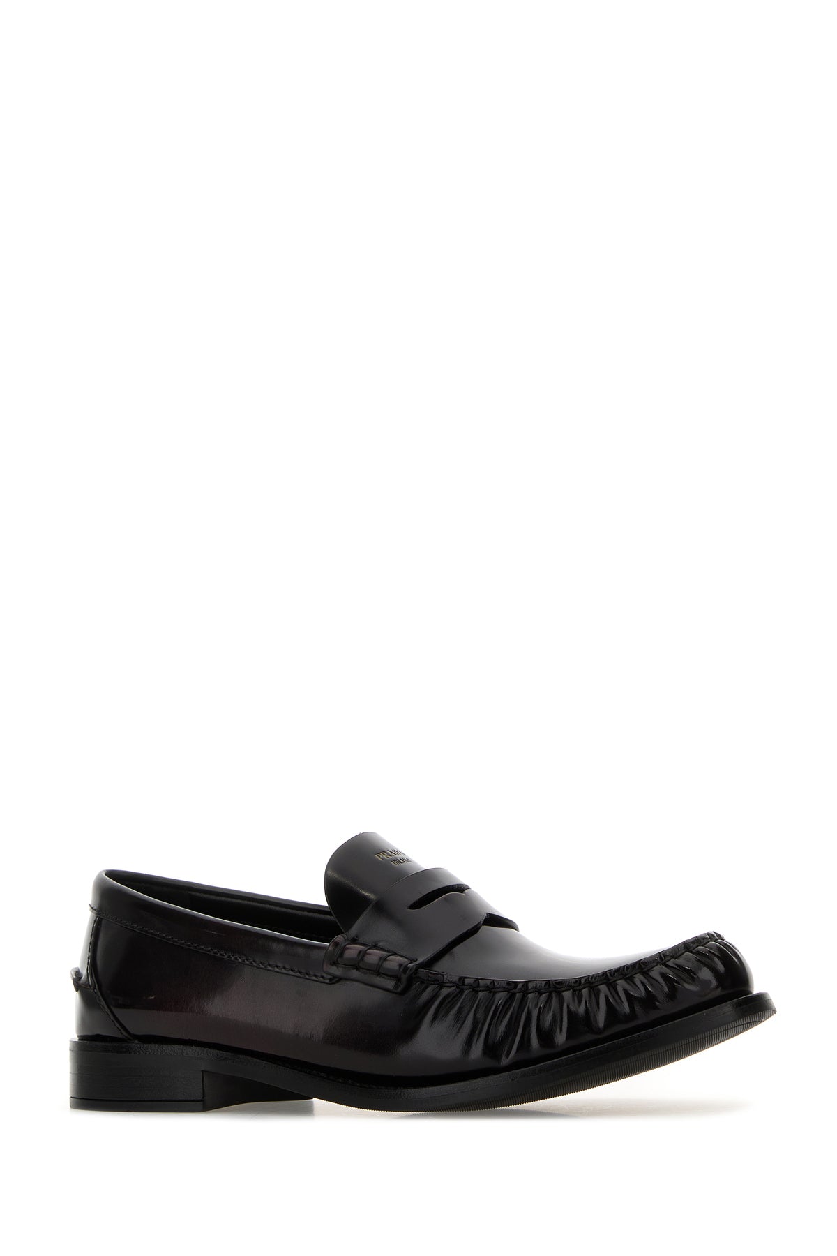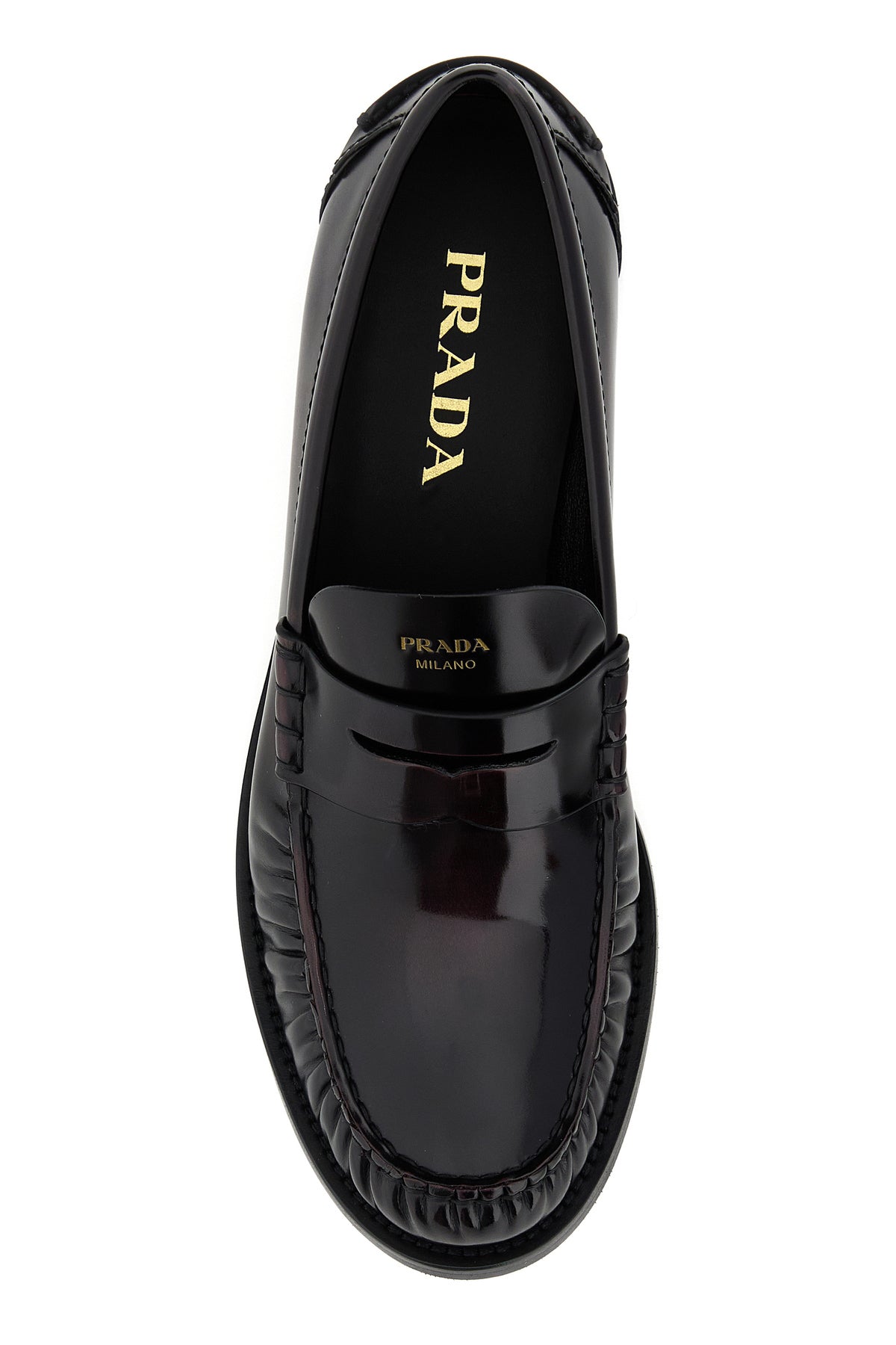 Loafers realized in polished-finish calf leather characterized by printed logo on the vamp.