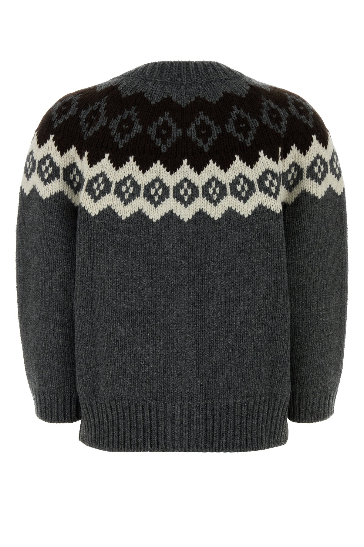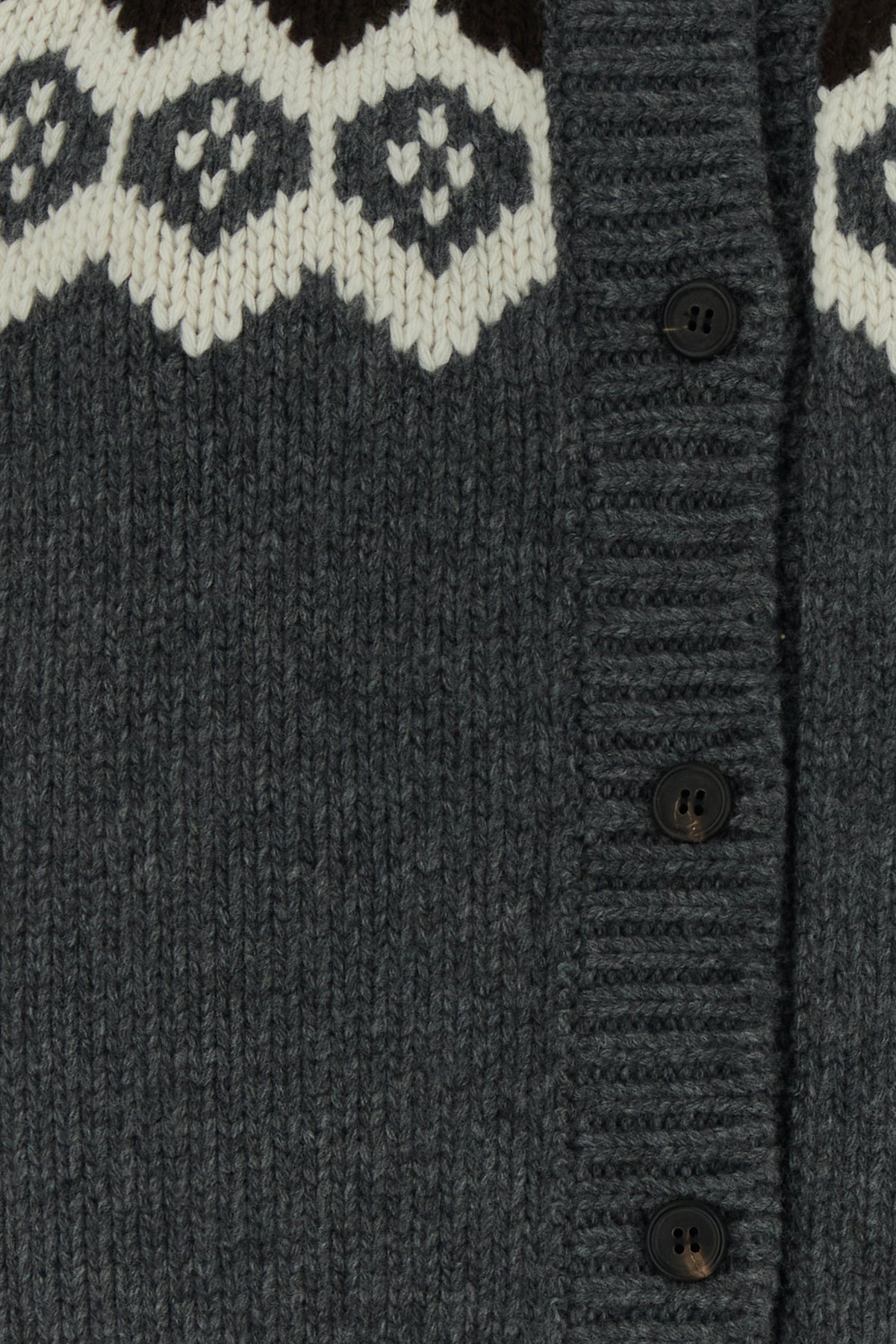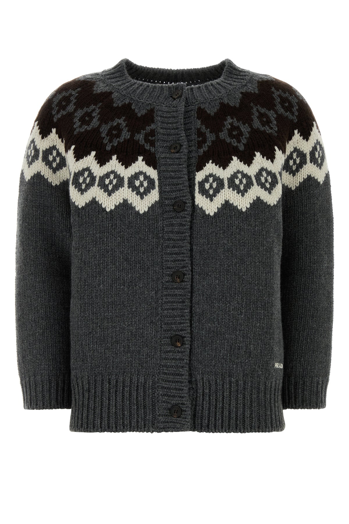 Cardigan realized in virgin wool and cashmere characterized by peculiar embroidery at the top and embroidered logo on the hemline.