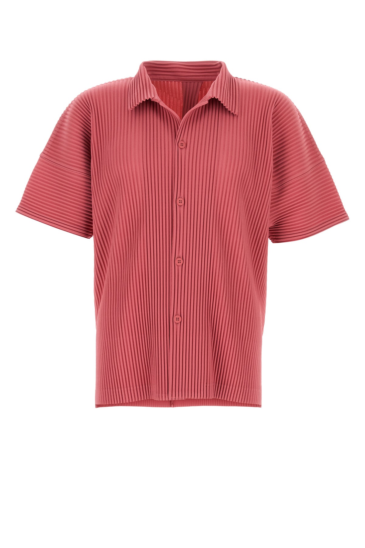 Short-sleeves shirt realized in pleated polyester characterized by short-pointed collar.