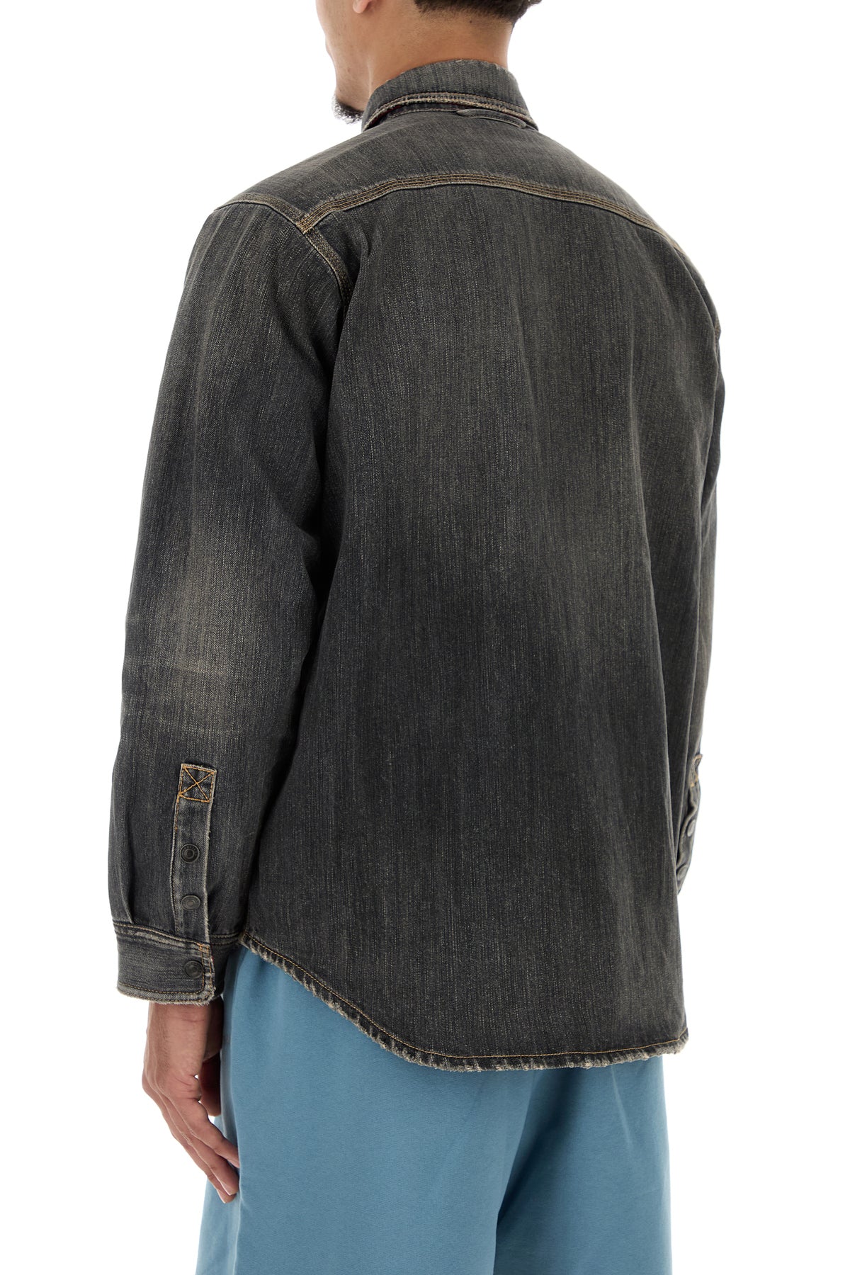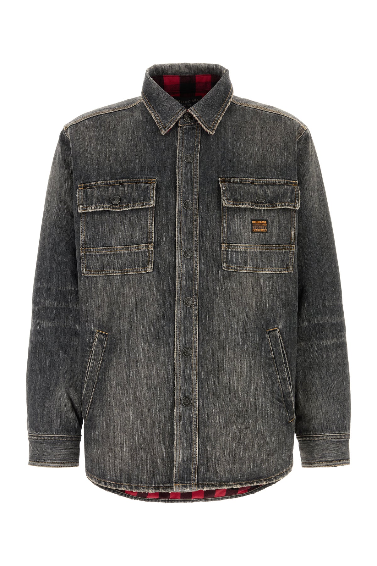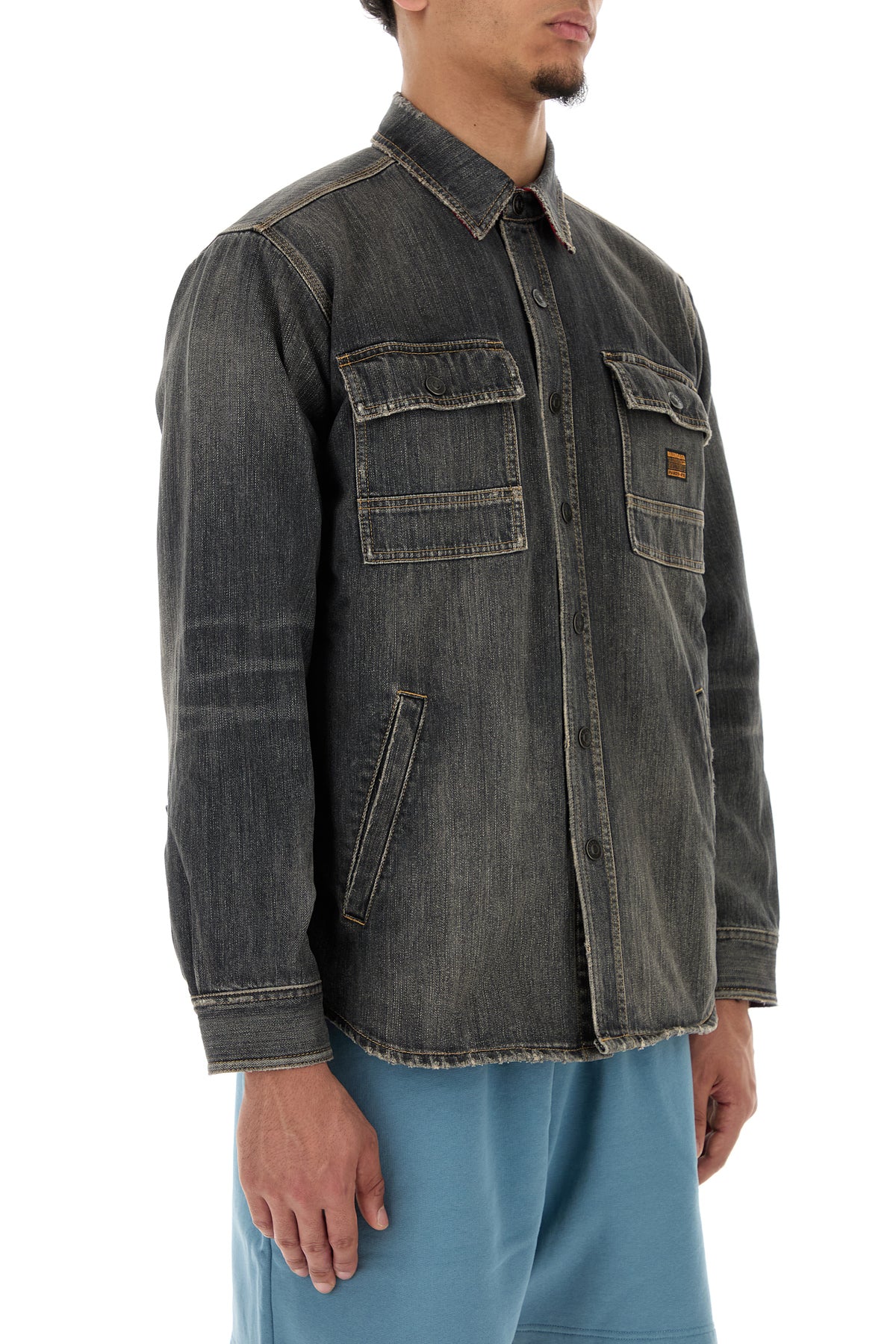 Shirt realized in stonewashed pure cotton denim enriched by logged label on the chest.