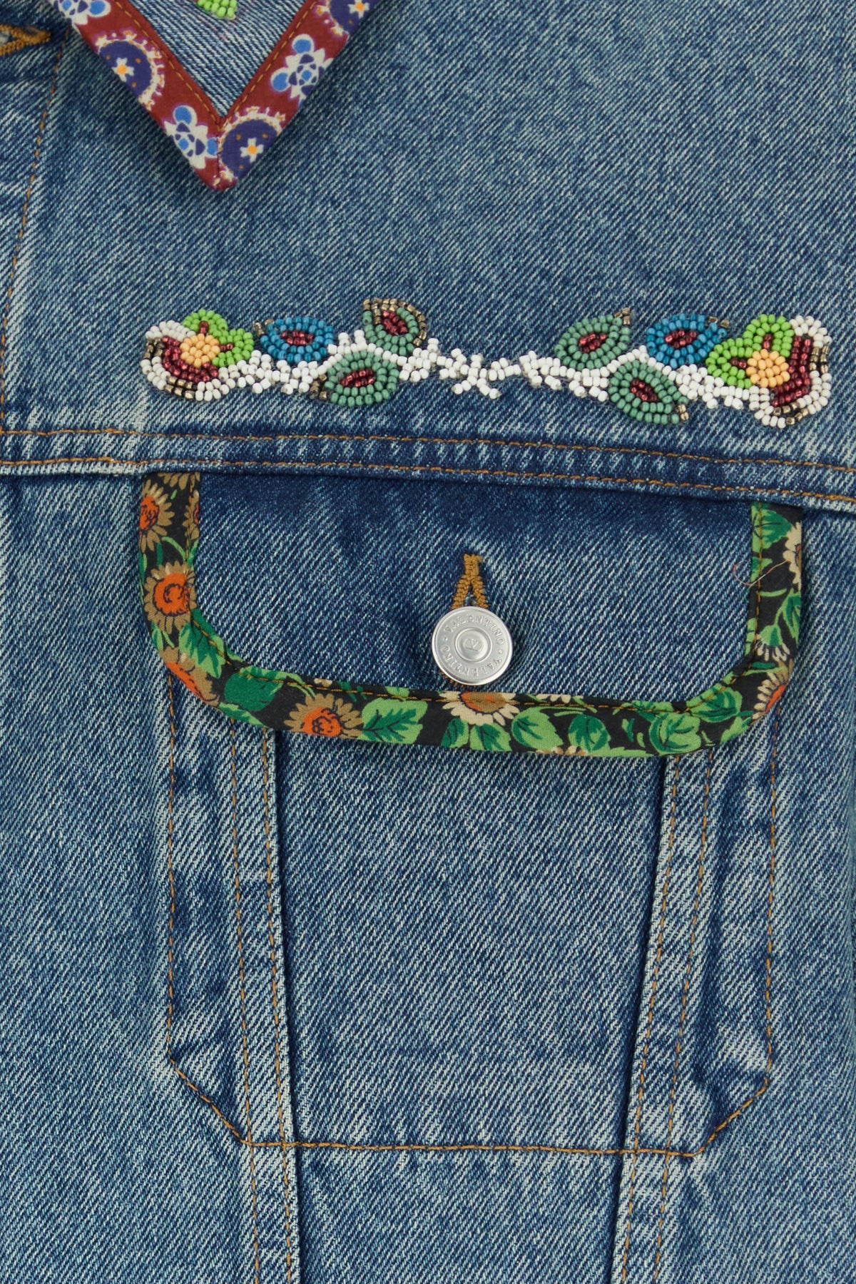 Jacket realized in pure cotton denim characterized by peculati embroidery with beads at the top.