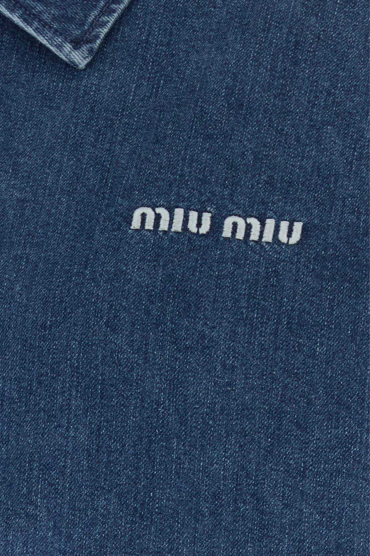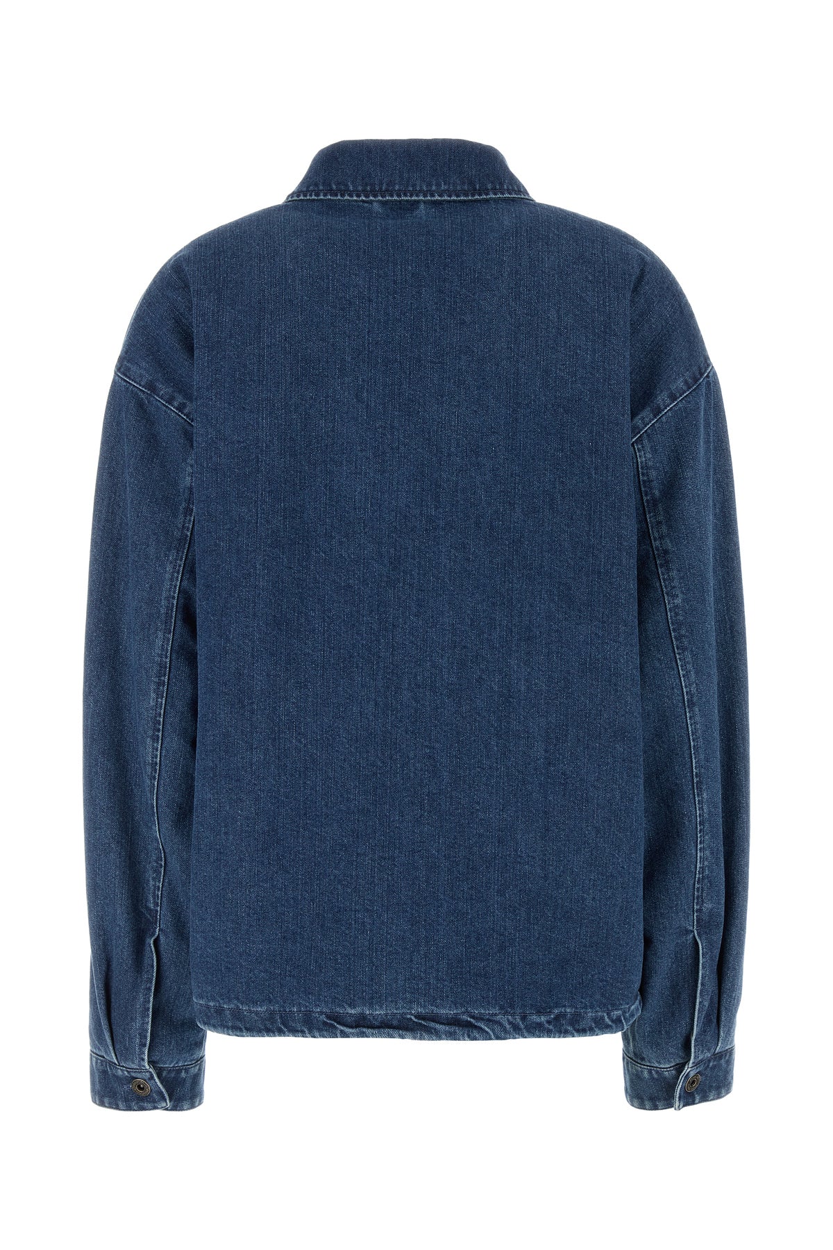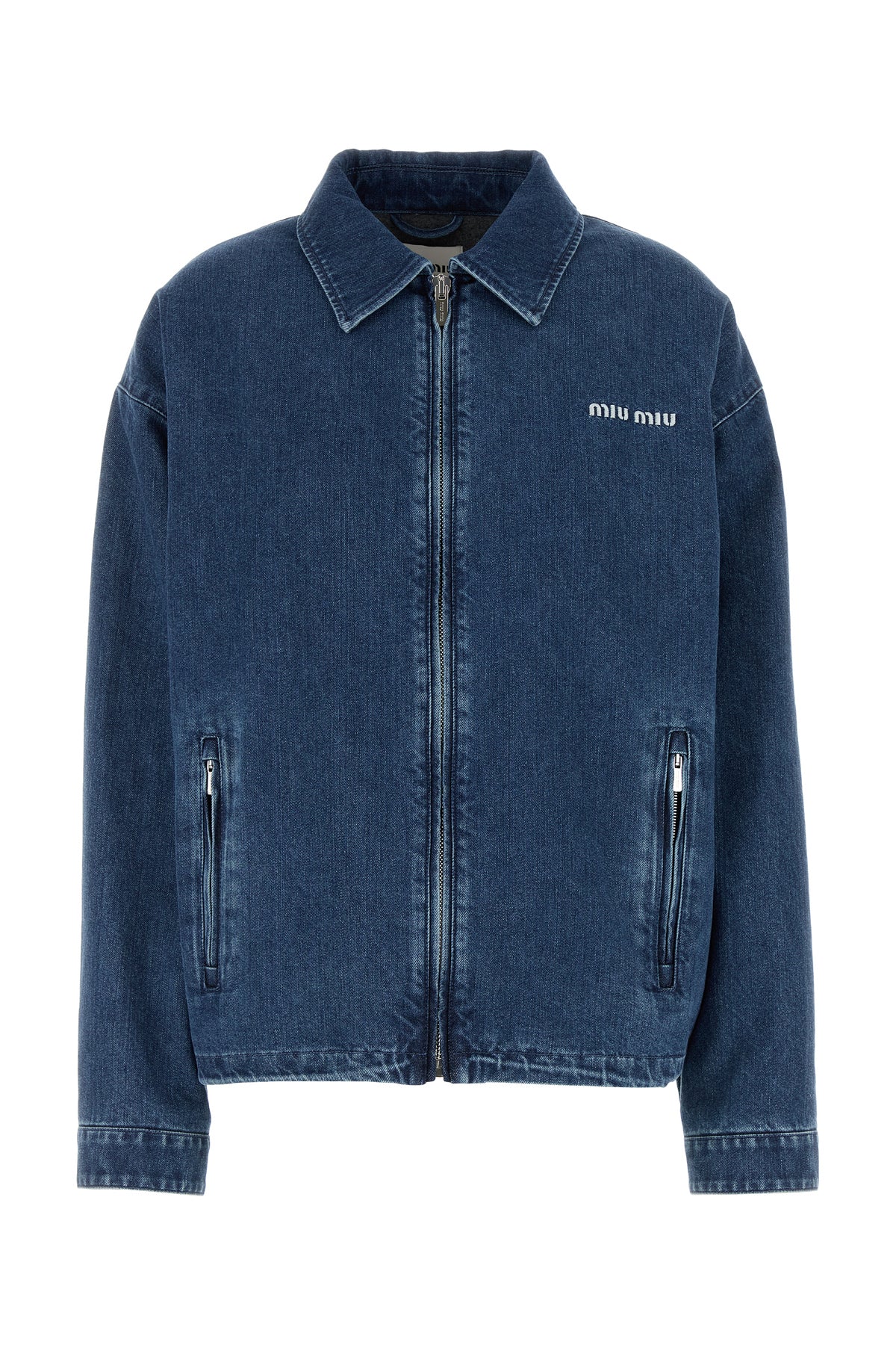 Jacket realized in stonewashed cotton and cashmere denim characterized by contrasting embroidered logo on the chest.