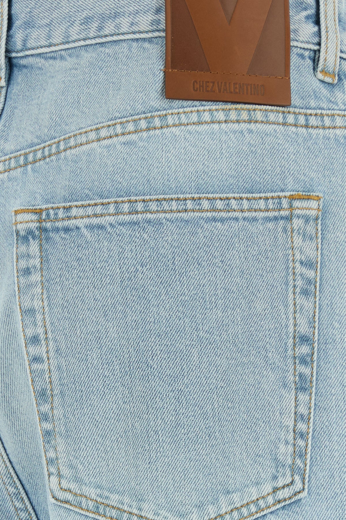 Jeans realizzati in stonewashed pure cotton denim characterized by contrasting peculiar embroidery on the hemline enriched by logoed label at the back.