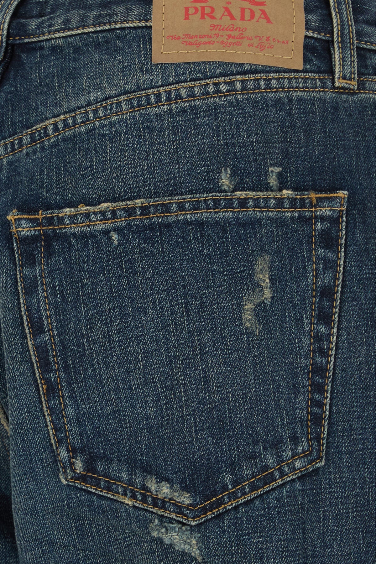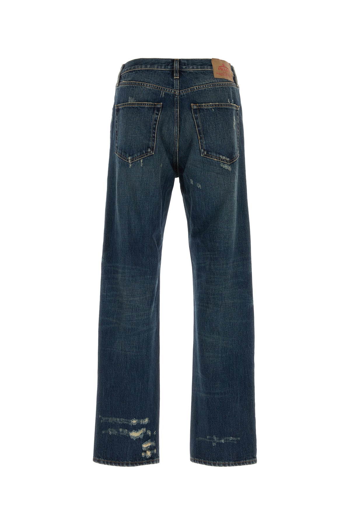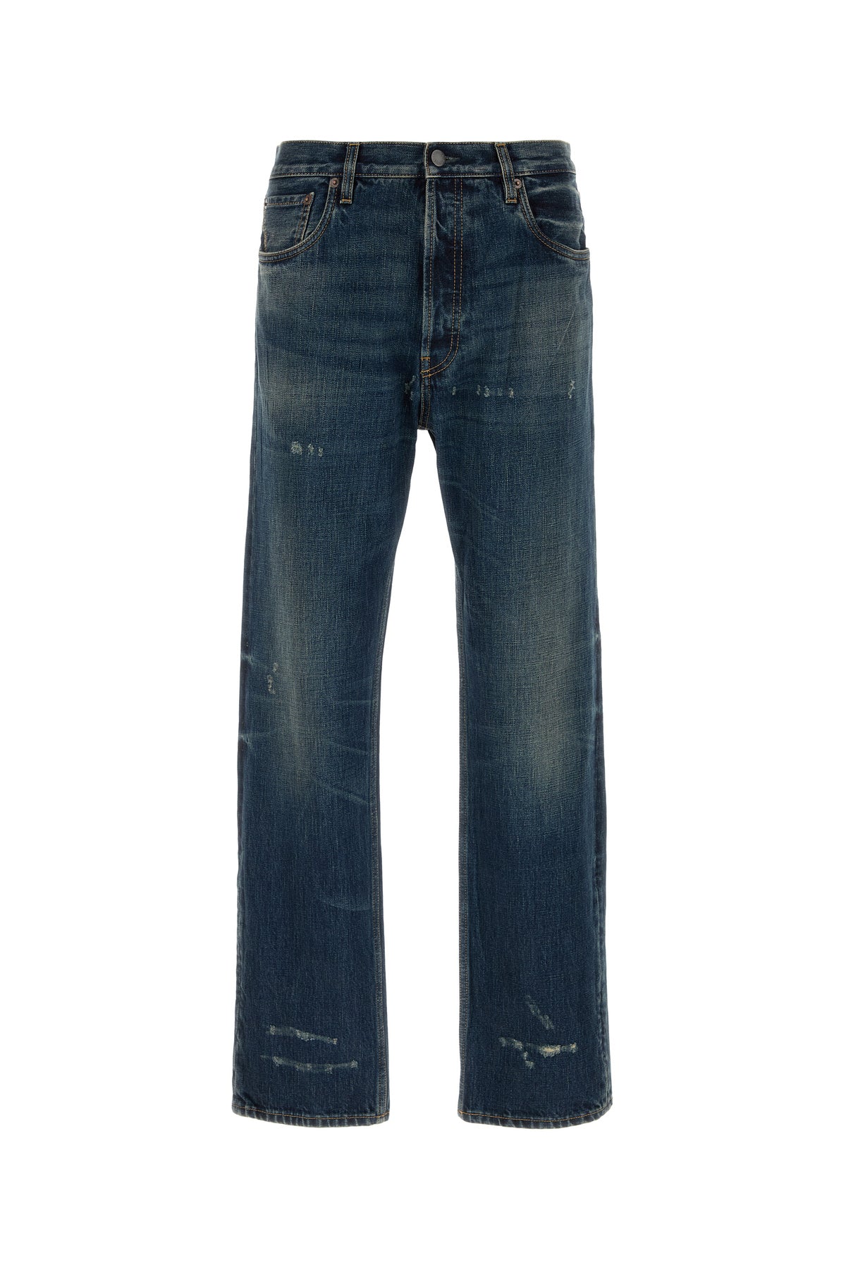 Jeans realized in stonewashed and distressed pure cotton denim enriched by contrasting logoed label at the back.