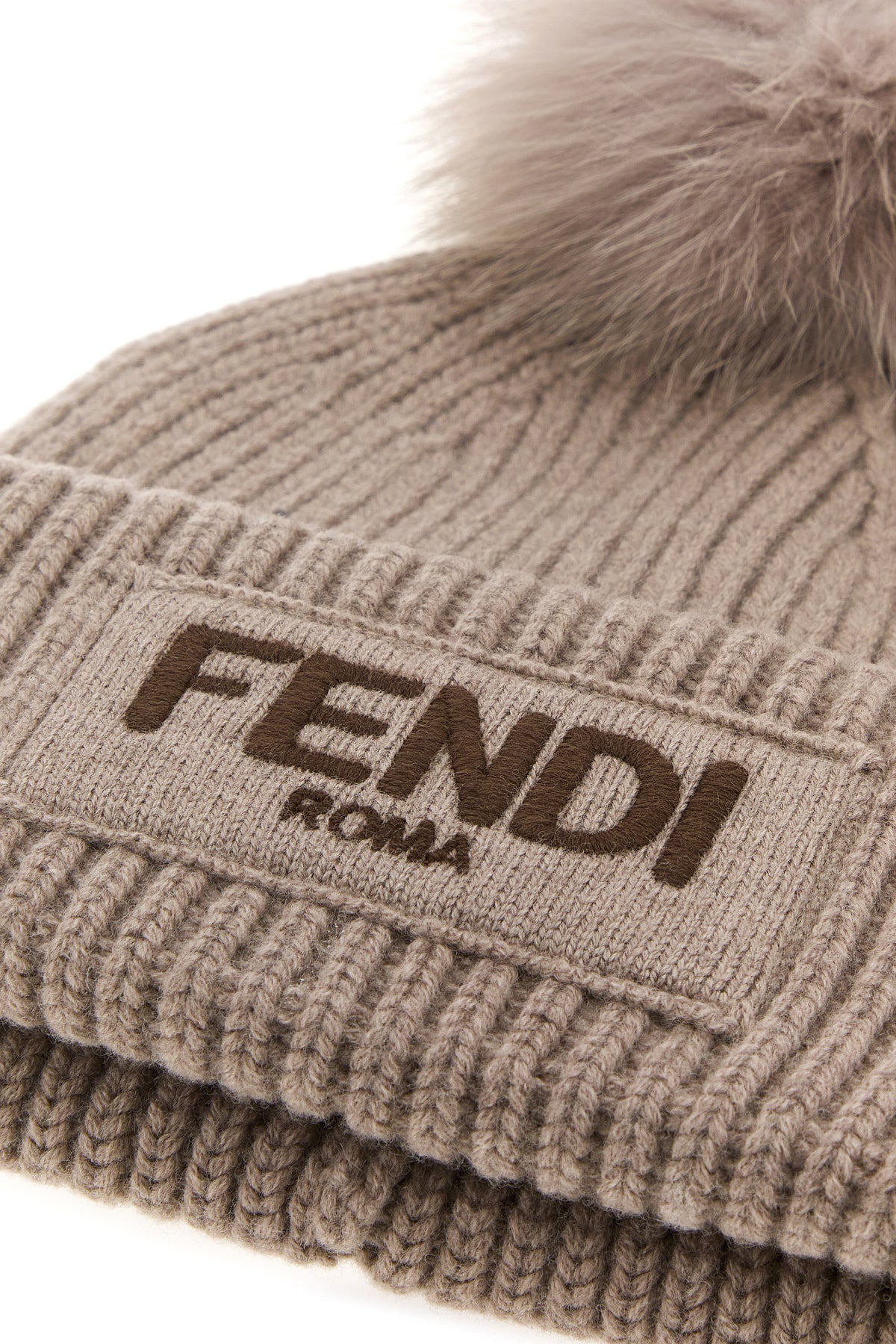 Beanie hat realized in ribbed pure wool enriched by Fendi Roma label at the front.