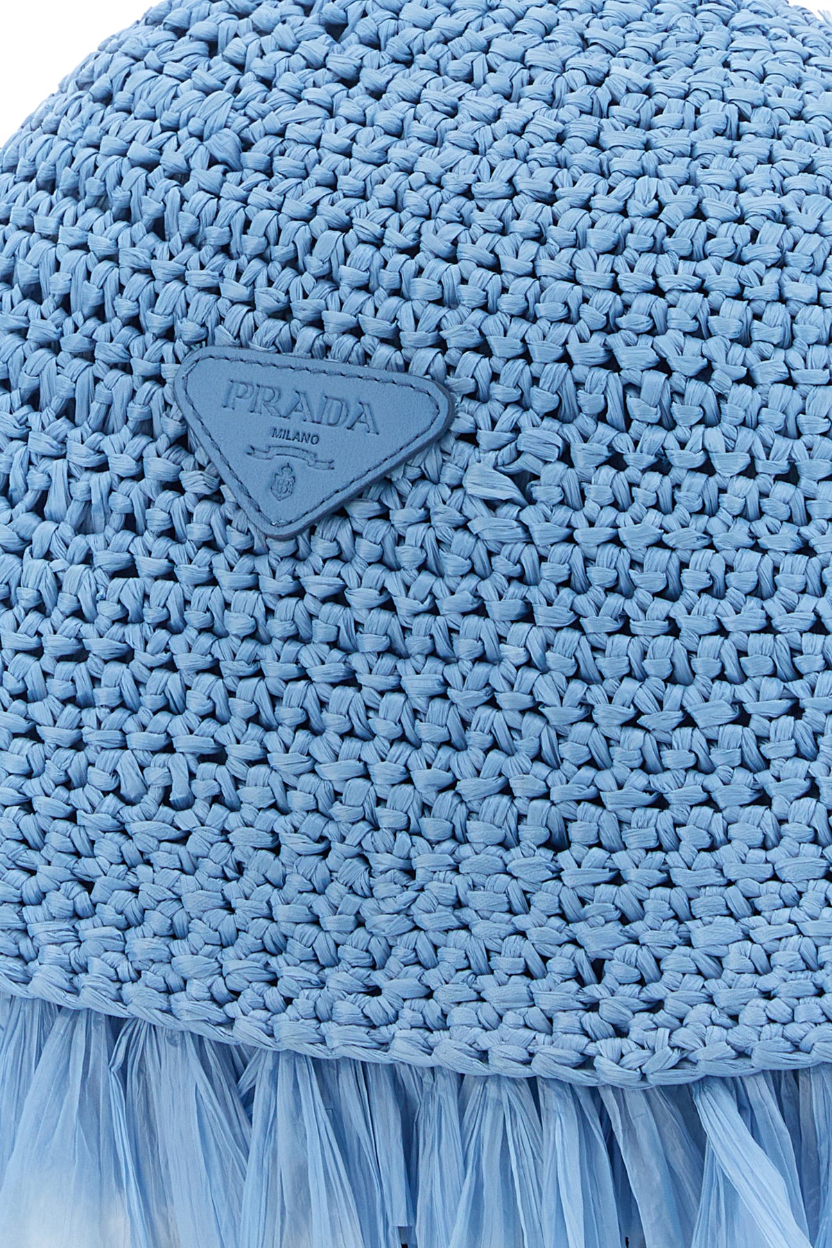 Bucket hat realized in raffia entirely covered by fringes enriched by iconic logoed metal triangle.