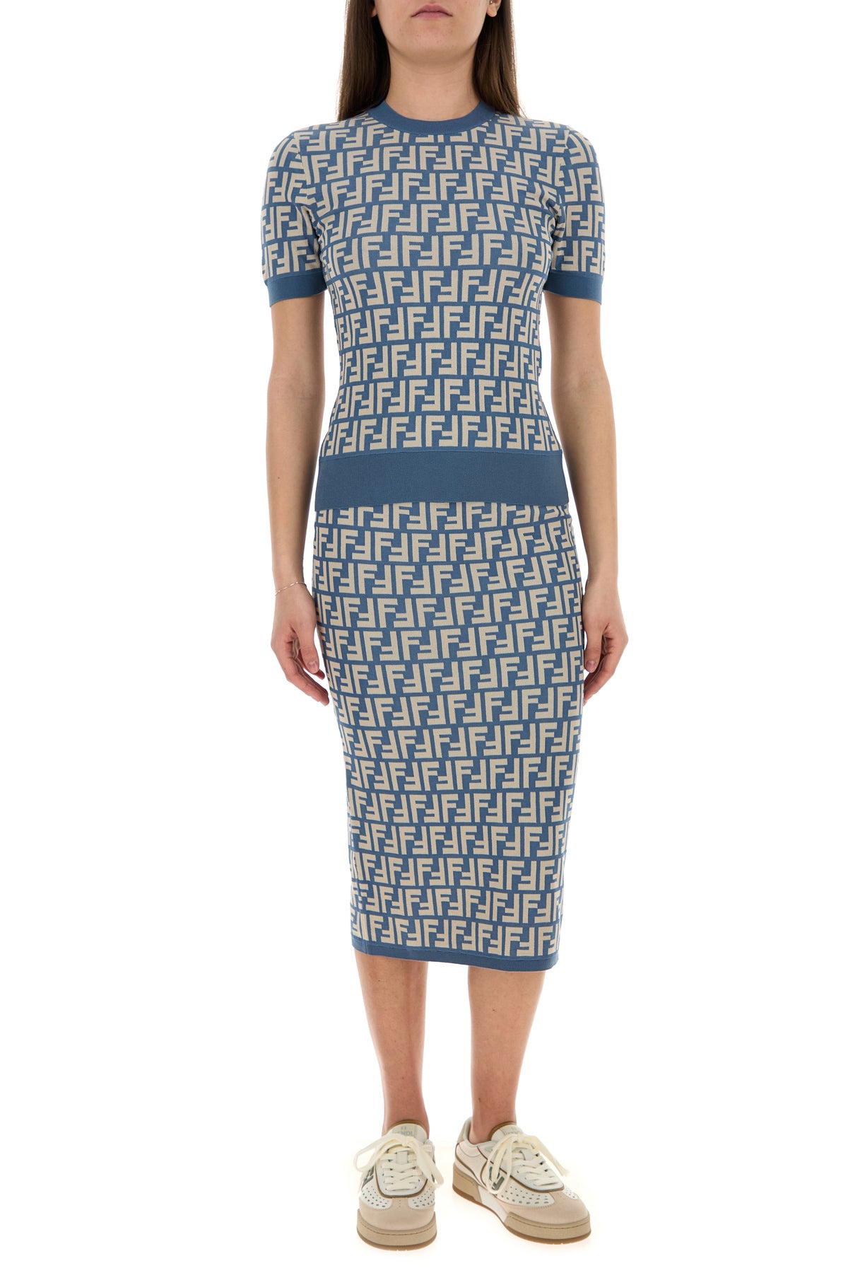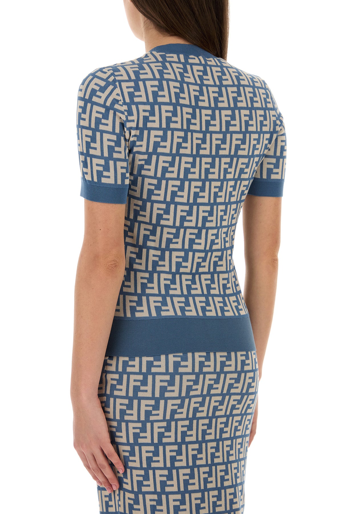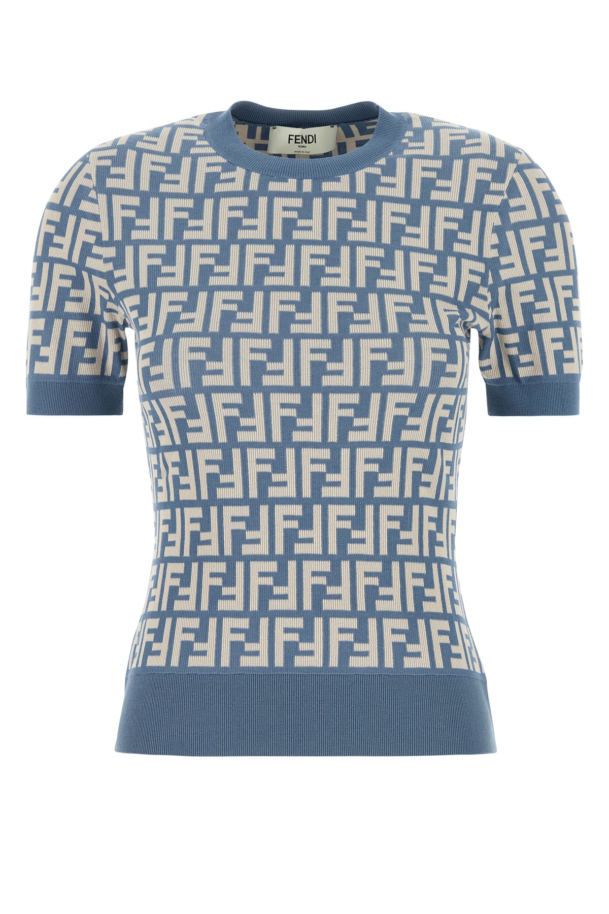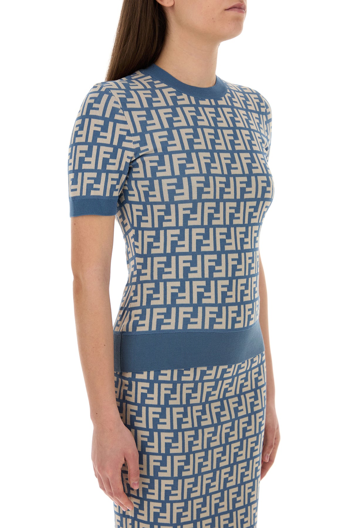 Short-sleeves sweater realized in stretch cotton blend characterized by FF embroidery on the entire surface.