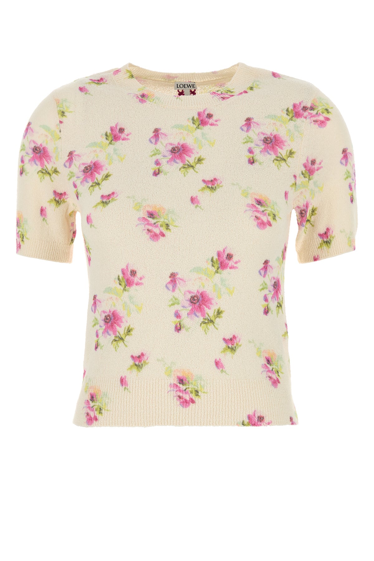 Short-sleeves sweater realized in cotton blend characterized by floral embroidery on the entire surface.