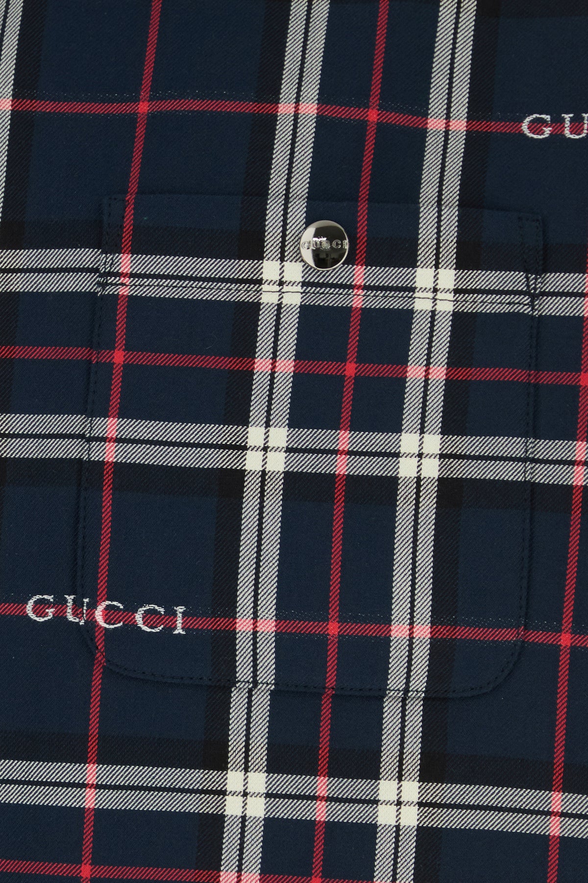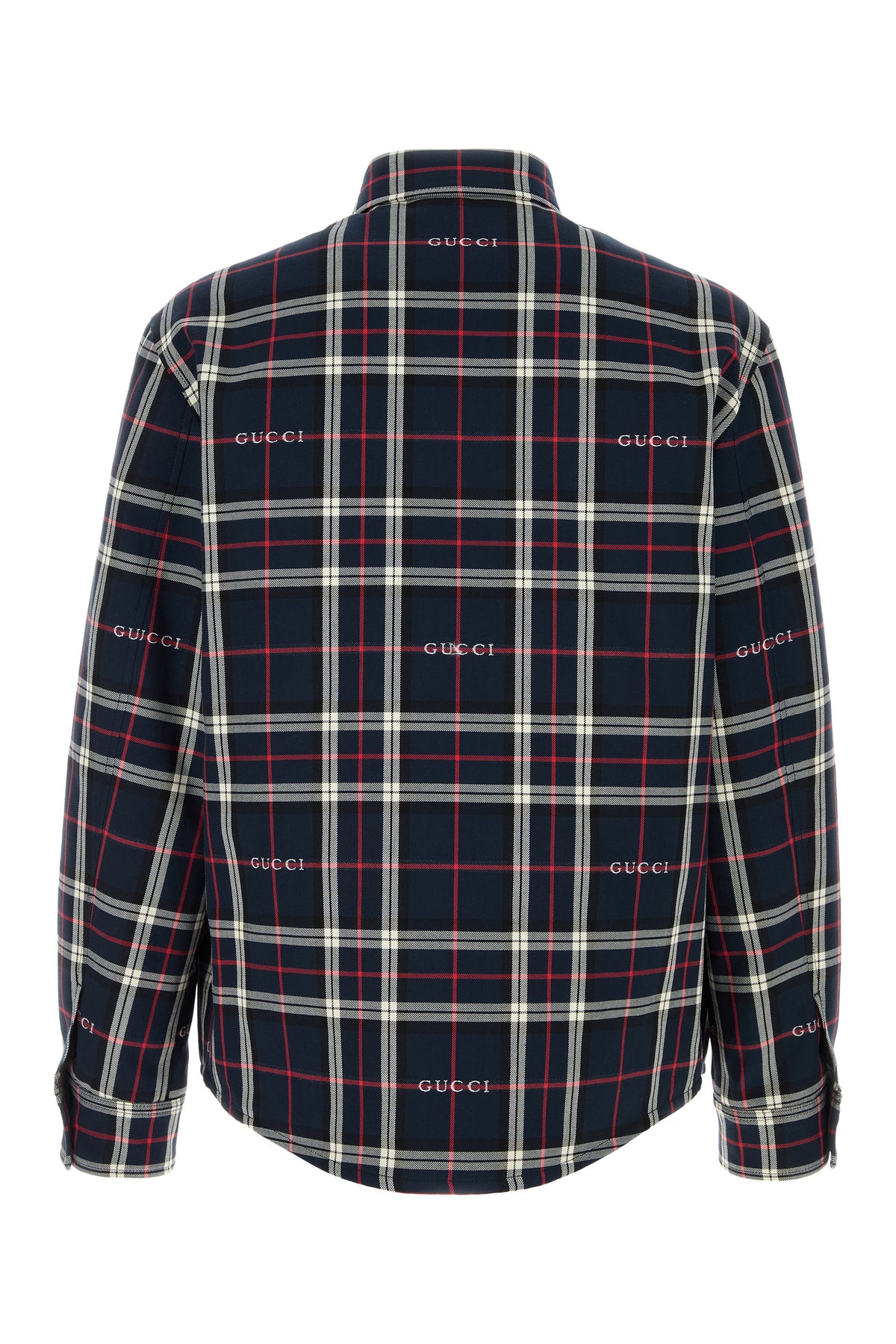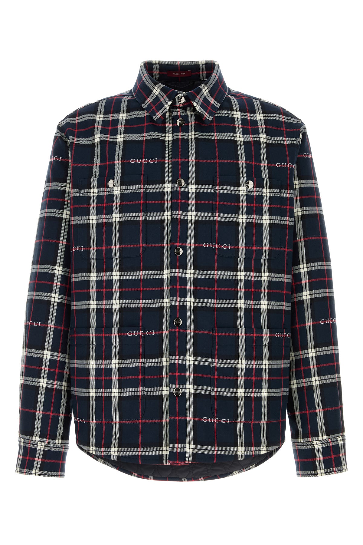 Padded shirt realized in pure cotton characterized by Gucci tartan embroidery on the entire surface.