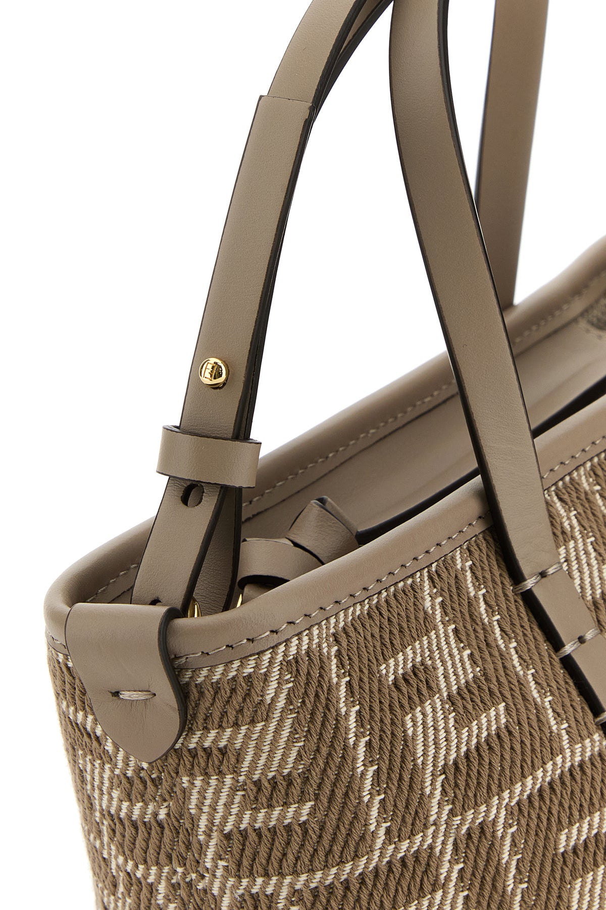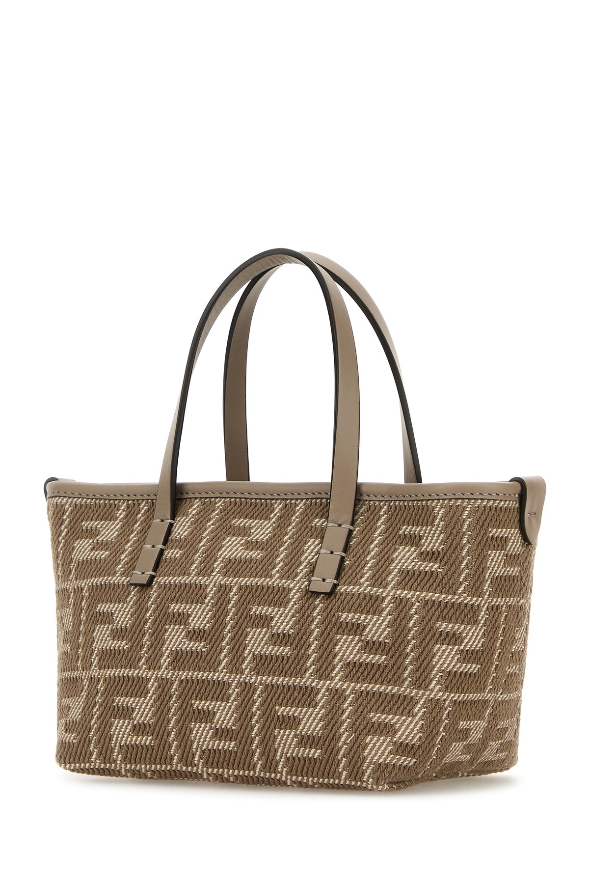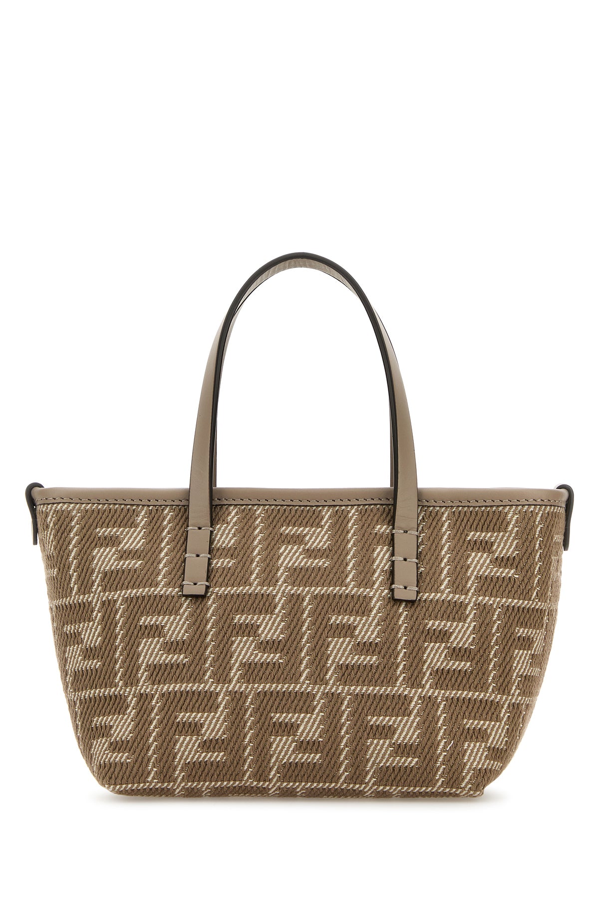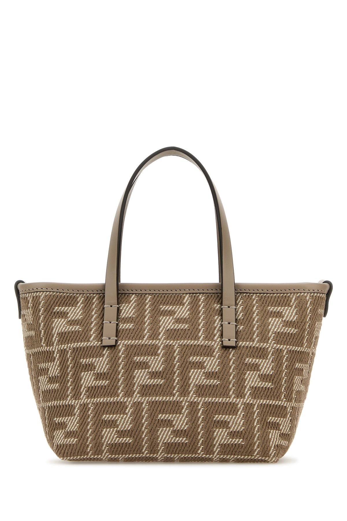 Handbag realized in fabric characterized by embroidered FF motif on the entire surface.