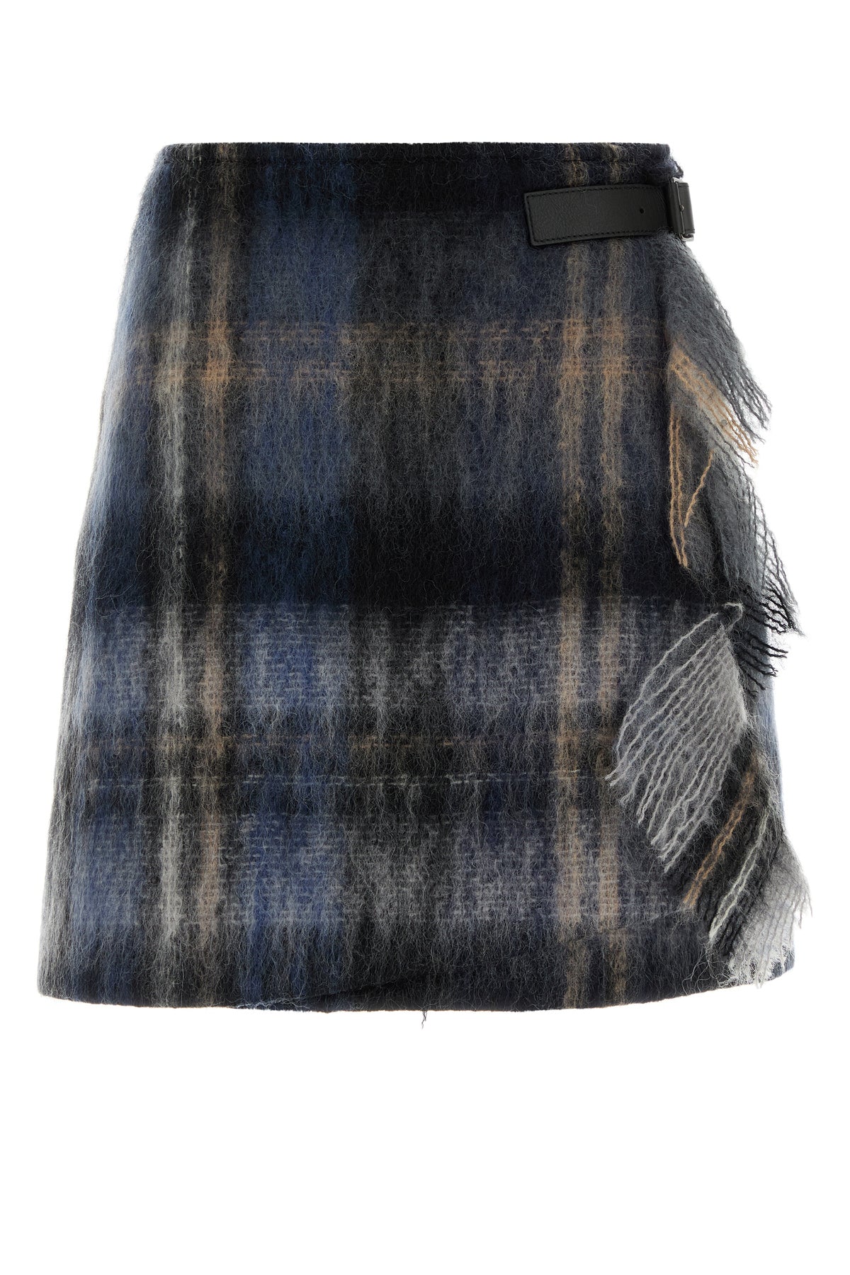 Mini skirt realized in mohair blend characterized by checked embroidery on the entire surface.