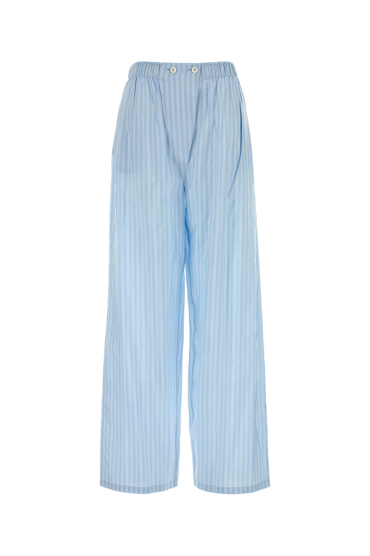 Pyjama pant realized in pure silk characterized by striped embroidery on the entire surface and iconic fabric triangle at the back.