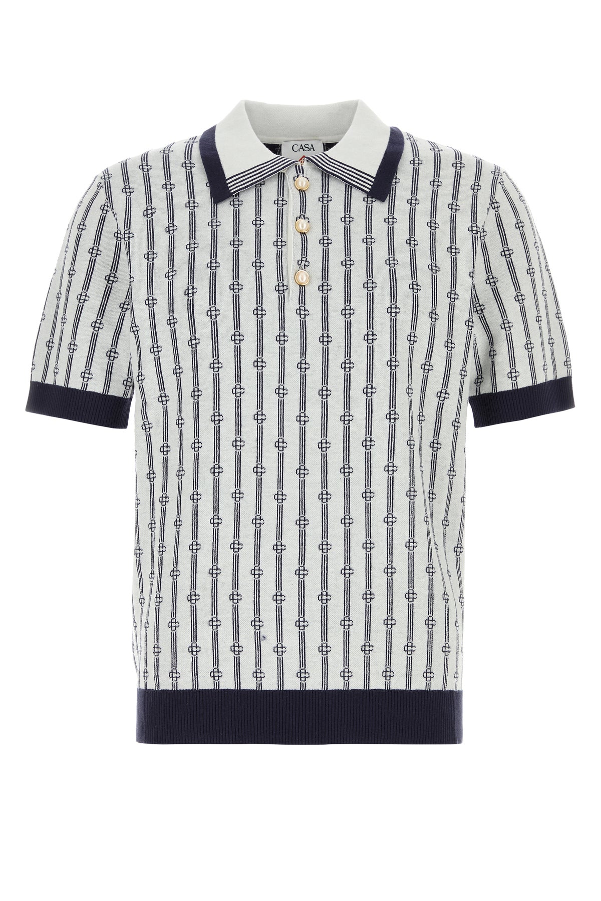 Polo shirt realized in stretch cotton blend characterized by Monogram embroidery on the entire surface.