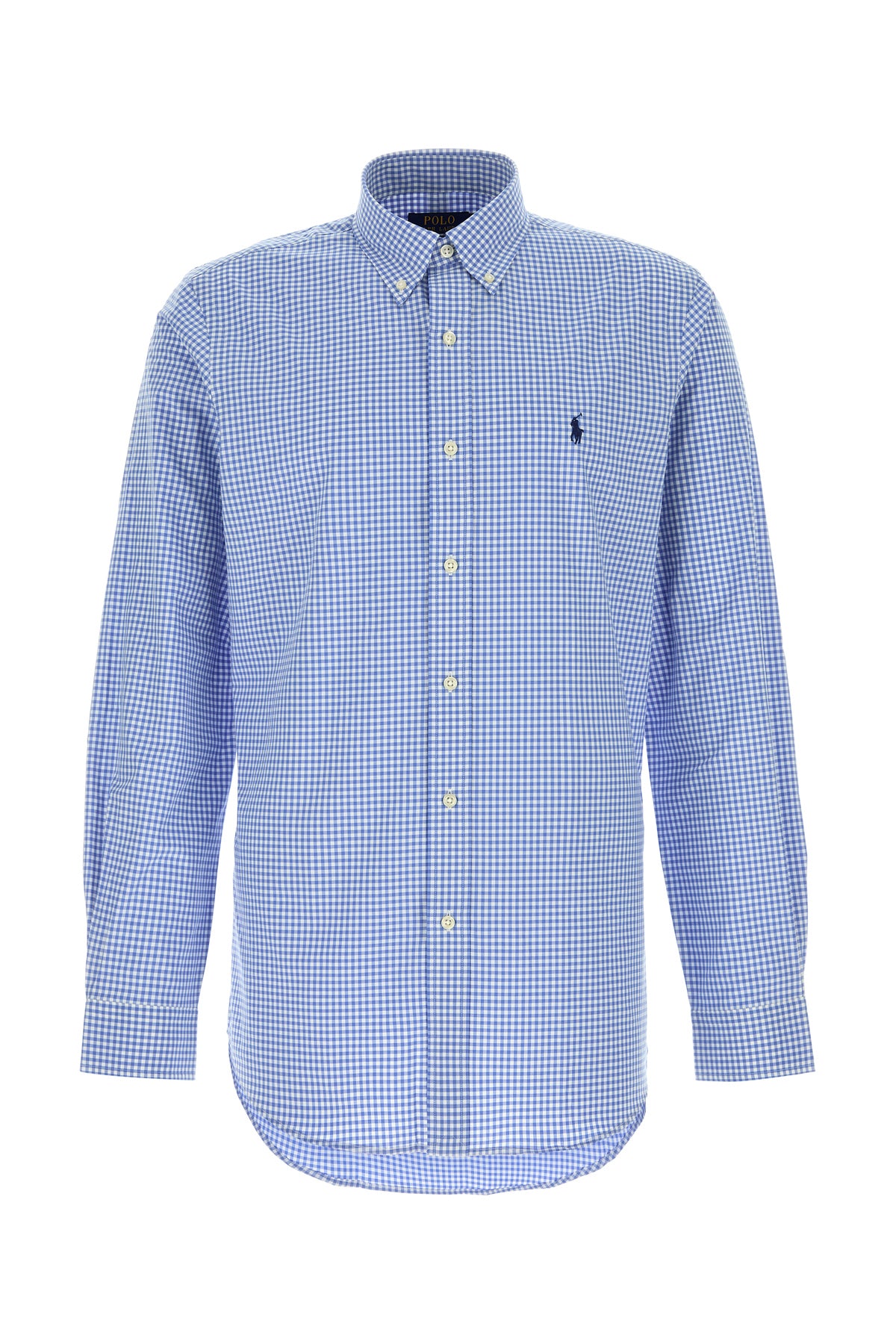 Shirt realized in stretch cotton poplin characterized by checked embroidery on the entire surface and iconic contrasting embroidered logo on the chest.