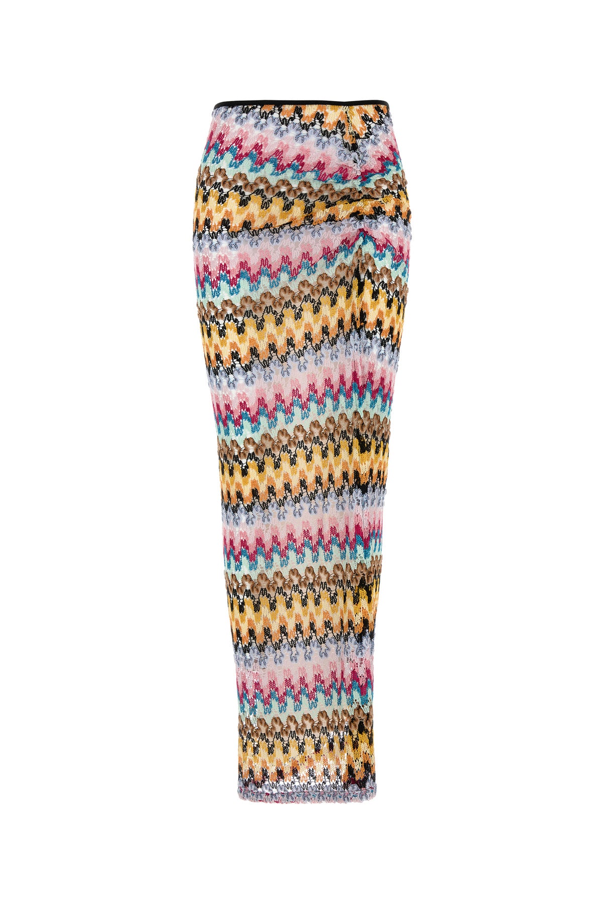 Skirt realized in viscose blend with lurex threads characterized by lateral deep slit a the front.
