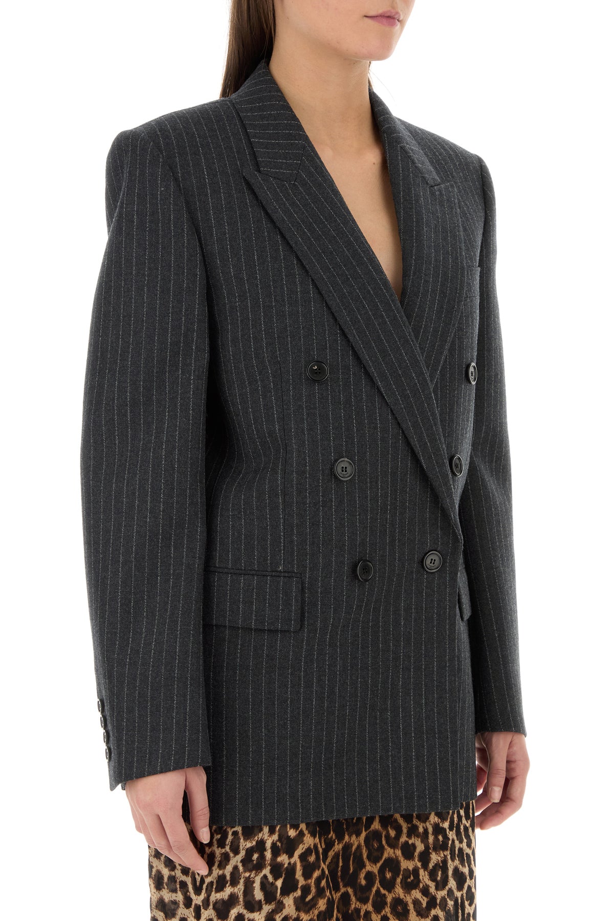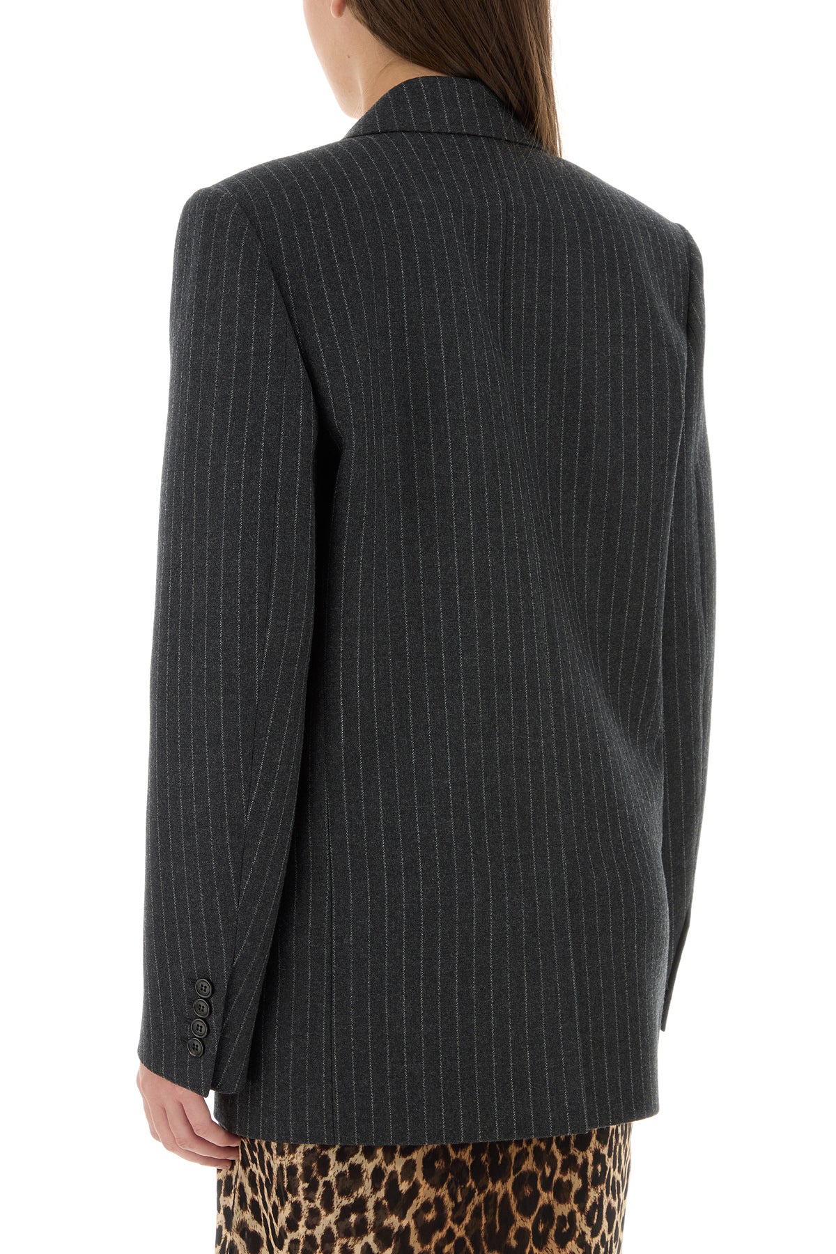 Blazer realized in pure wool characterized by pinstriped motif embroidery on the entire surface.