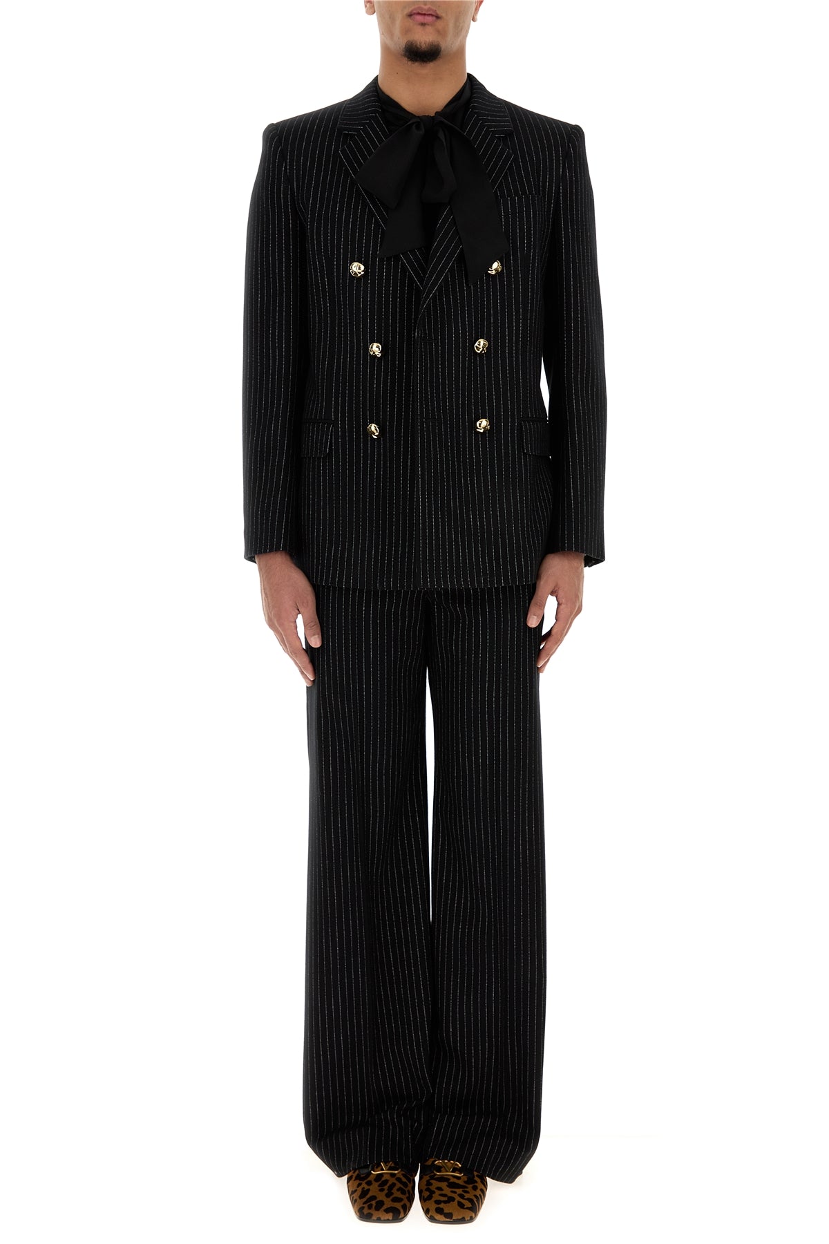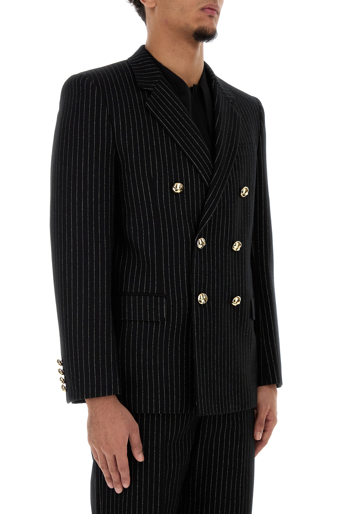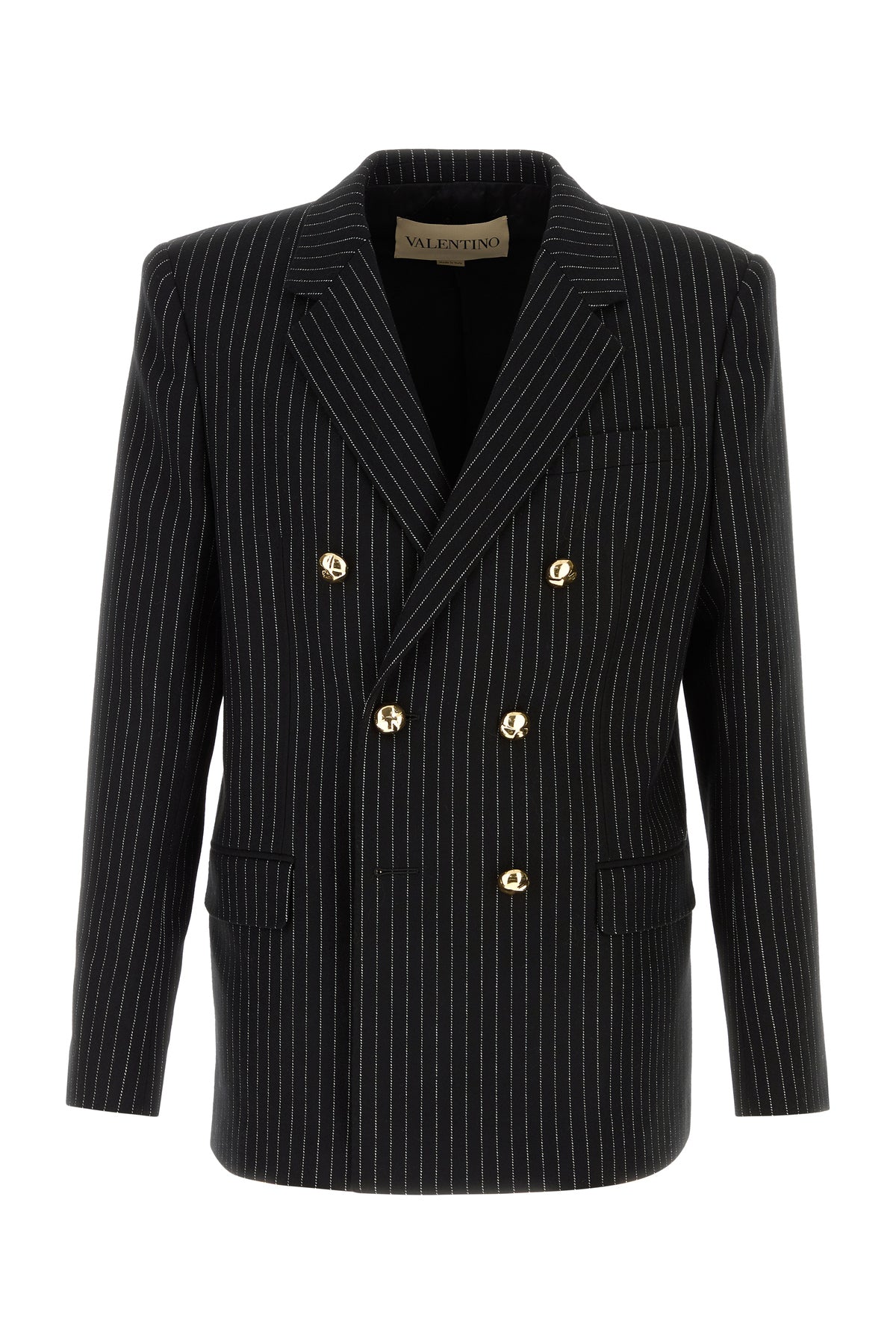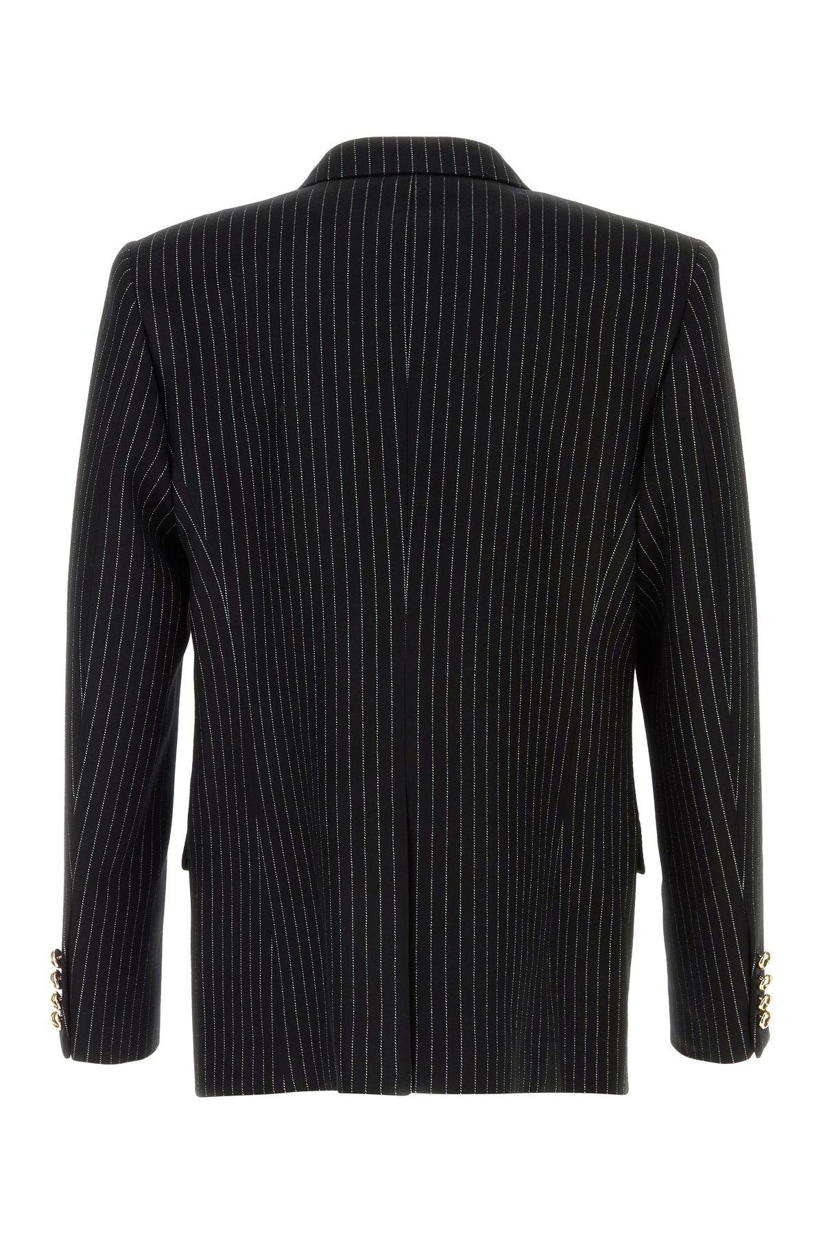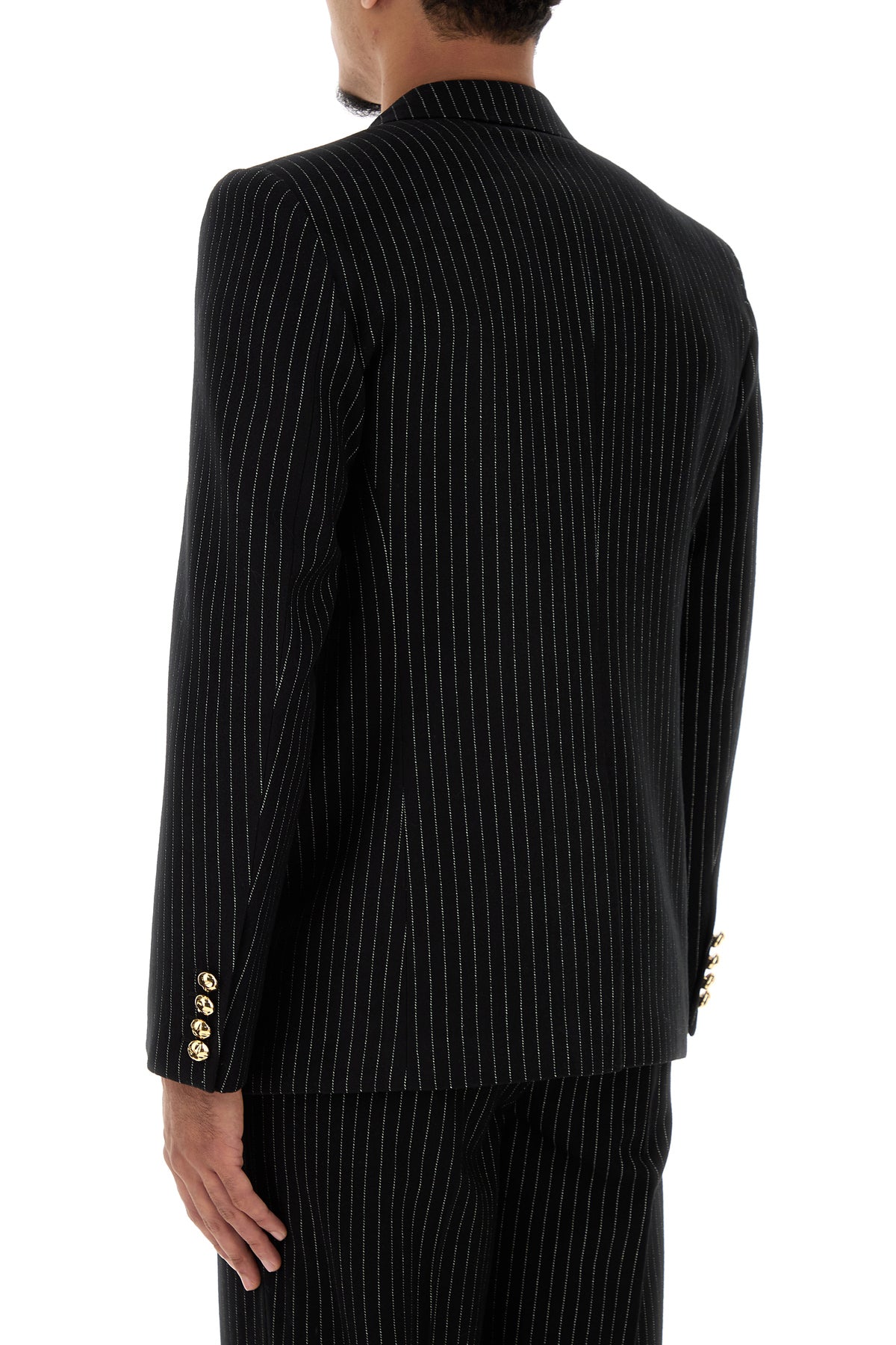 Blazer realized in wool and silk characterized by pinstriped embroidery on the entire surface.