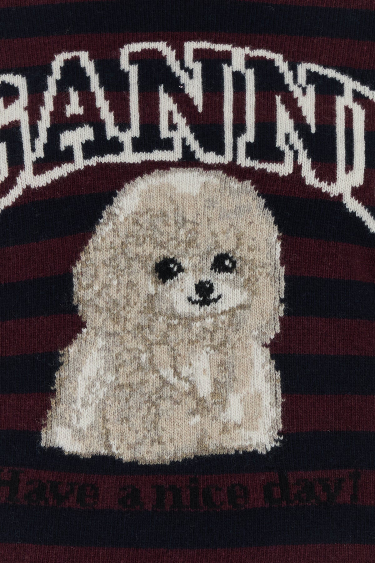 Sweater realized in wool blend characterized by striped embroidery on the entire surface and logoed embroidery at the front.