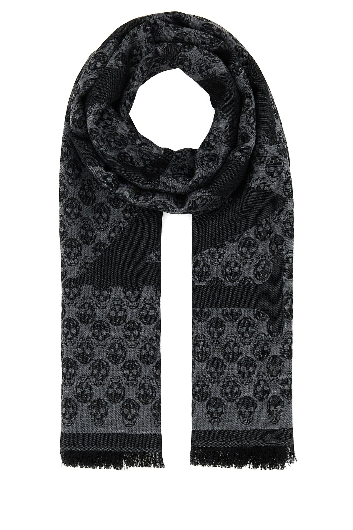 Foulard realized in pure wool characterized by Skull embroidery on the entire surface and McQueen embroidery at the front.