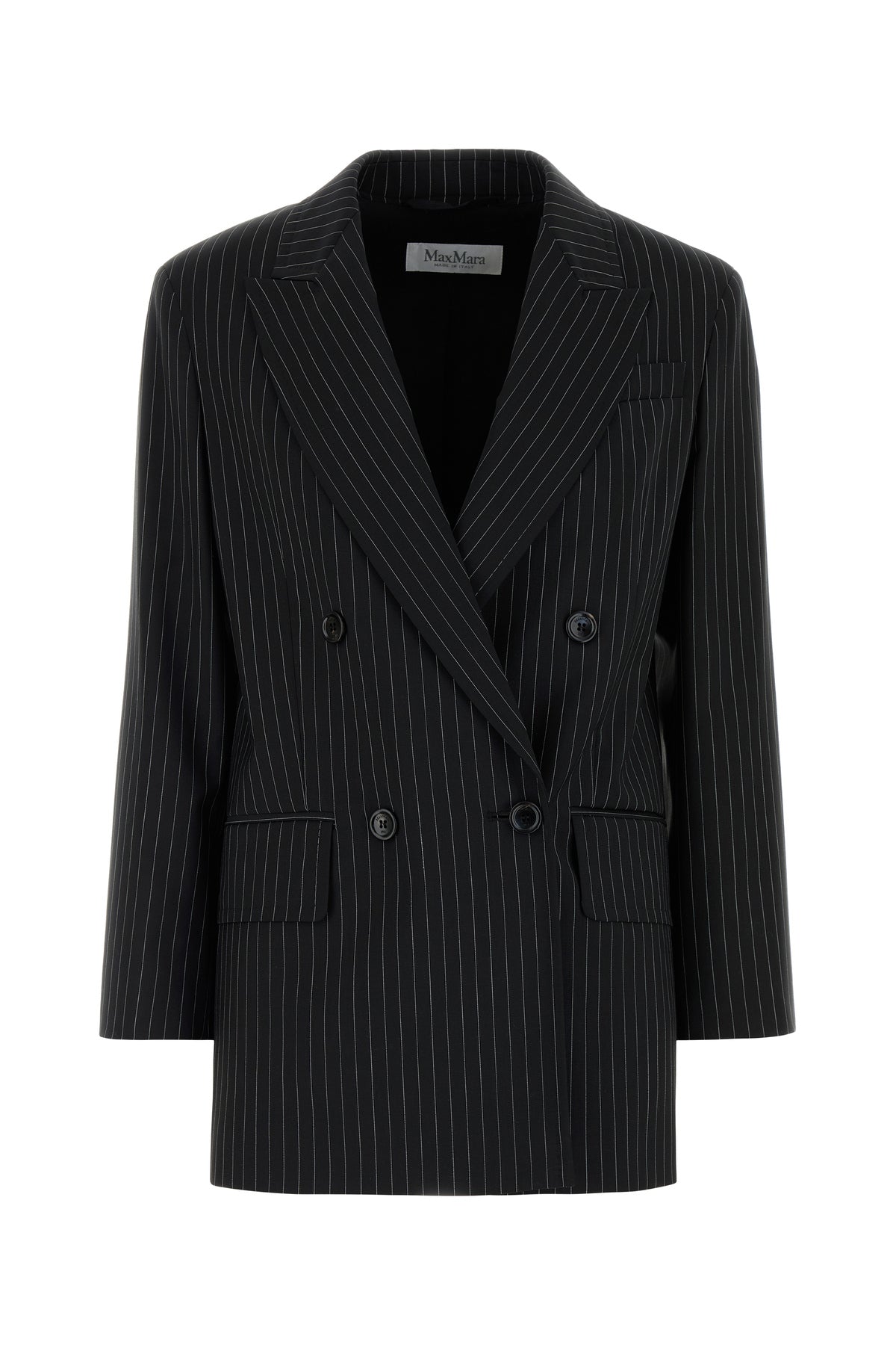 Blazer realized in pure virgin wool characterized by pinstriped motif embroidery on the entire surface.