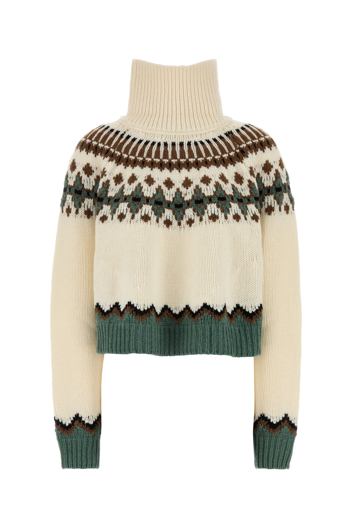 Oversize sweater realized in pure virgin wool characterized by Sweet Winter embroidery on the entire surface.