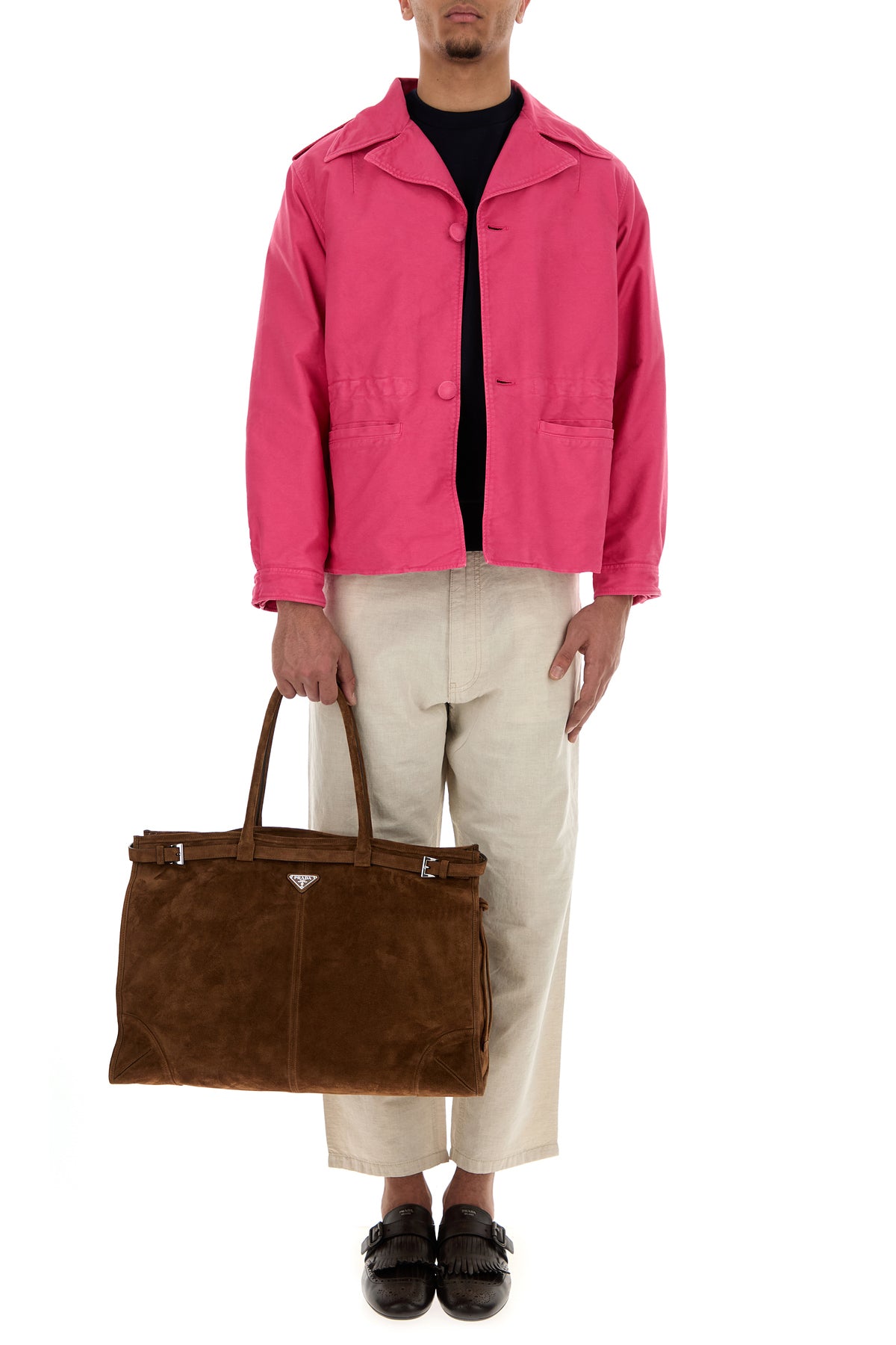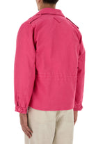 Jacket realized in vintage-effect pure cotton enriched by cut-out iconic triangle at the back.