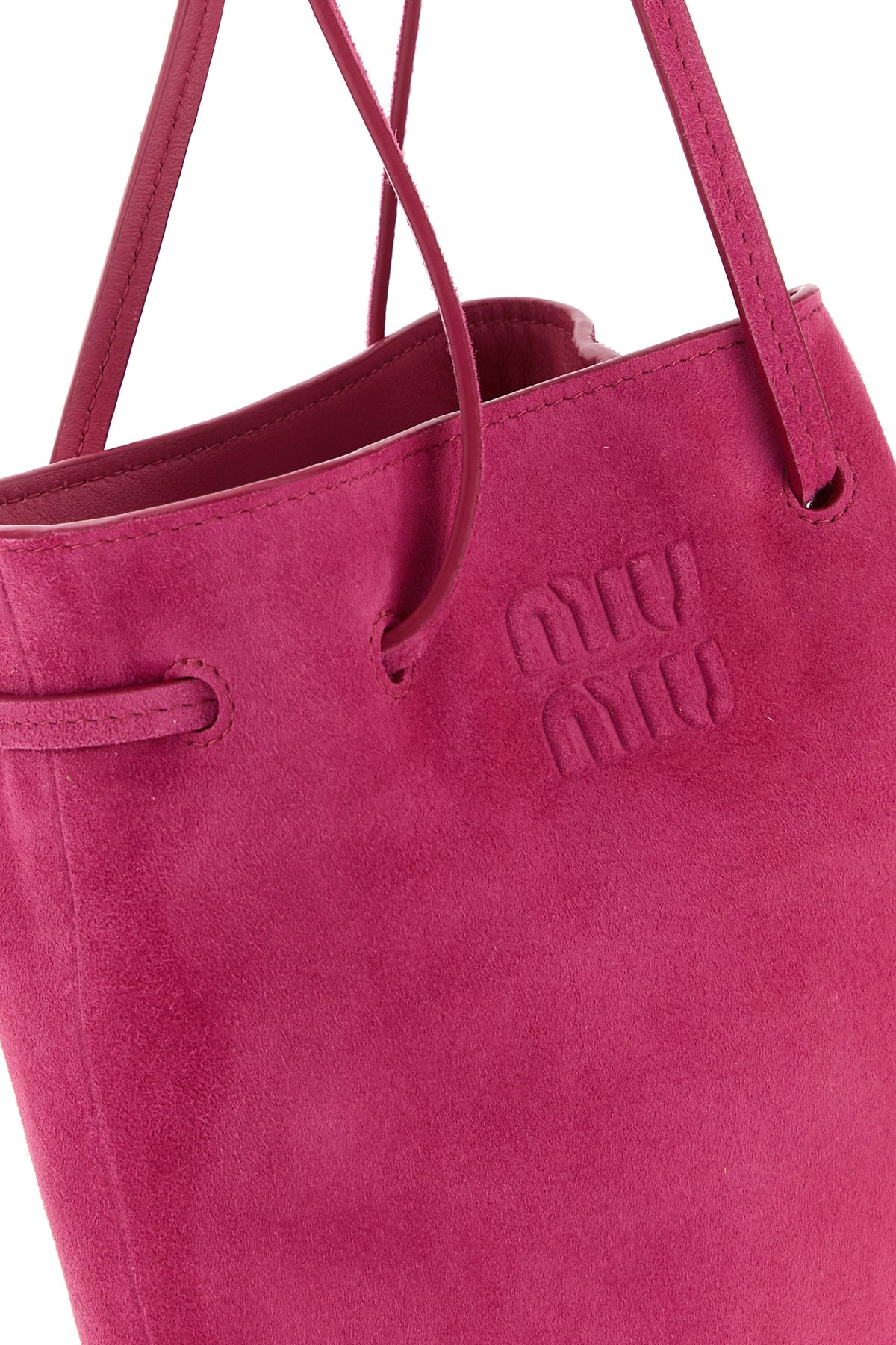Crossbody bag realized in suede characterized by tonal logo in relief at the front.