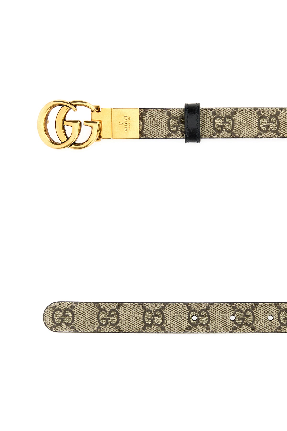 Reversible belt realized in coated GG Supreme fabric characterized by metal GG buckle.