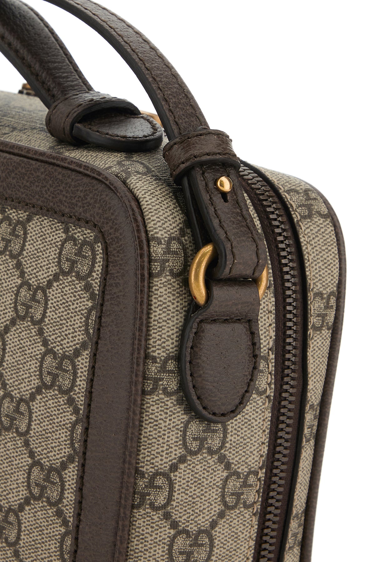 Handbag realized in coated GG Supreme fabric with leather inserts characterized by Web Ribbon at the front and at the back enriched by metal GG detail at the front.