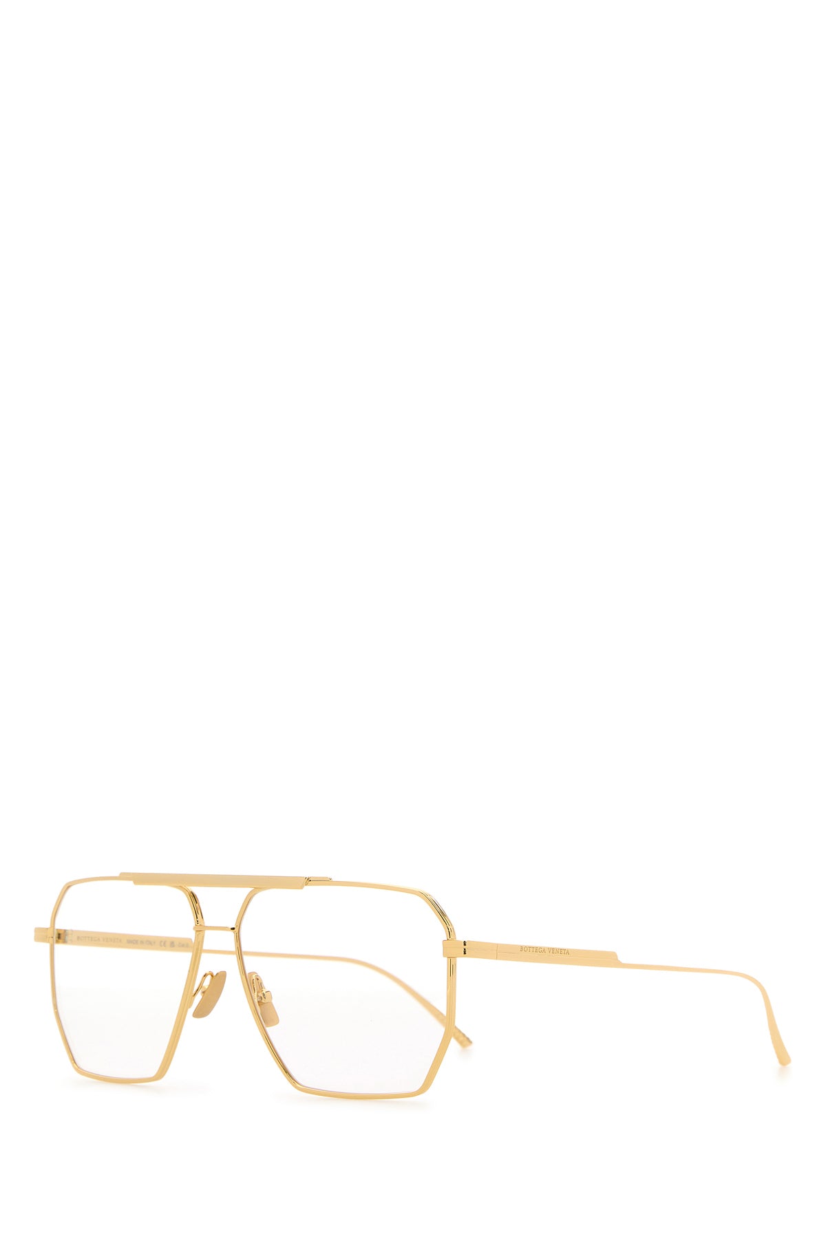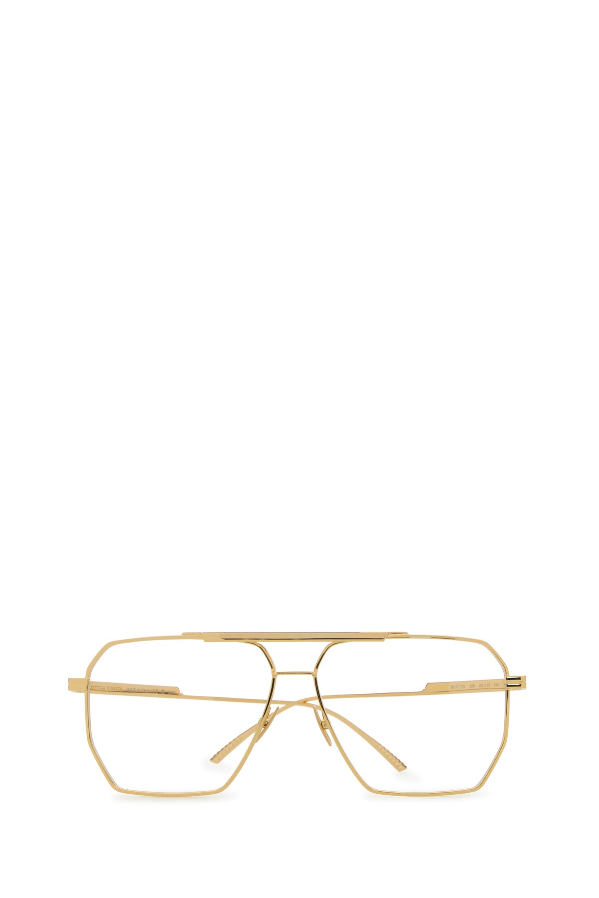 Aviator style glasses realized in metal characterized by embossed logo on the arms.