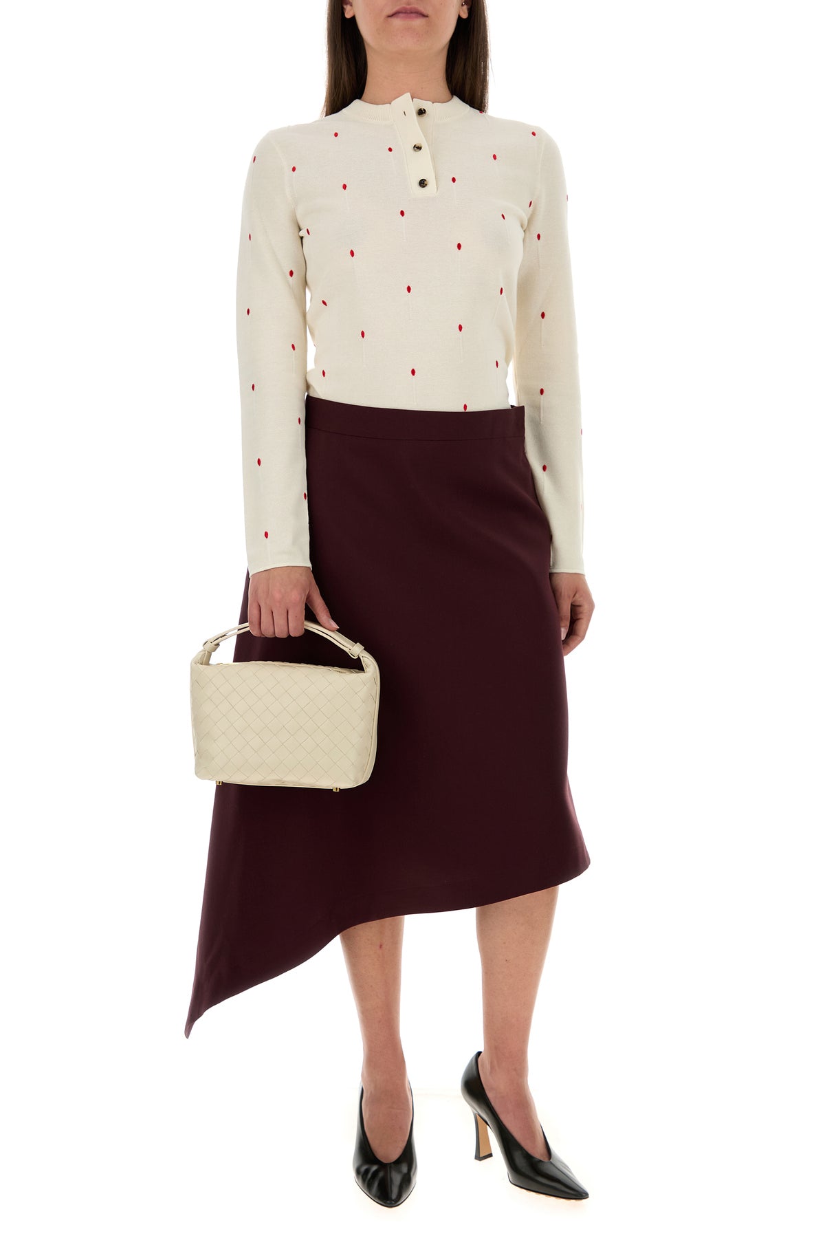 Flared skirt realized in pure wool characterize by asymmetric hemline.