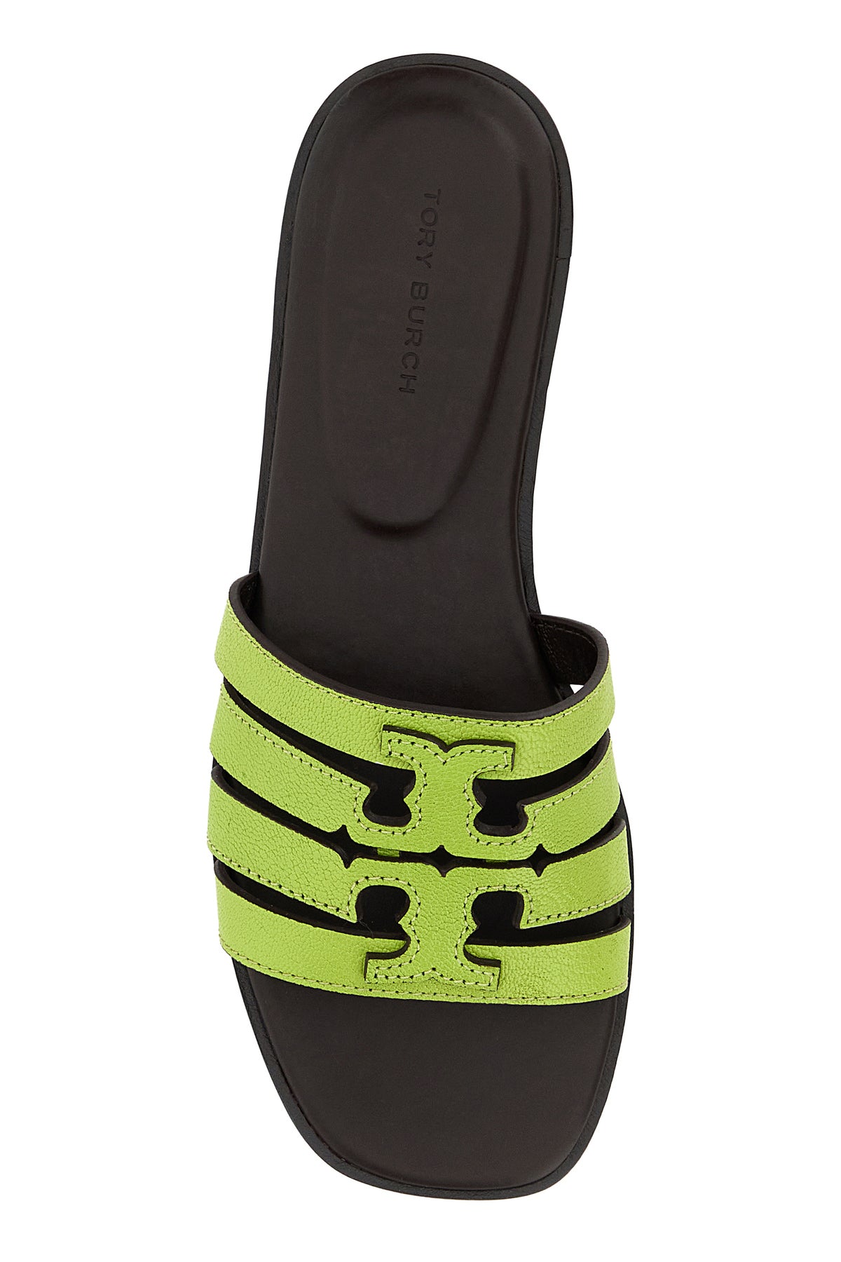 Slippers realized in pebble leather ranched by logoed patch on the instep.