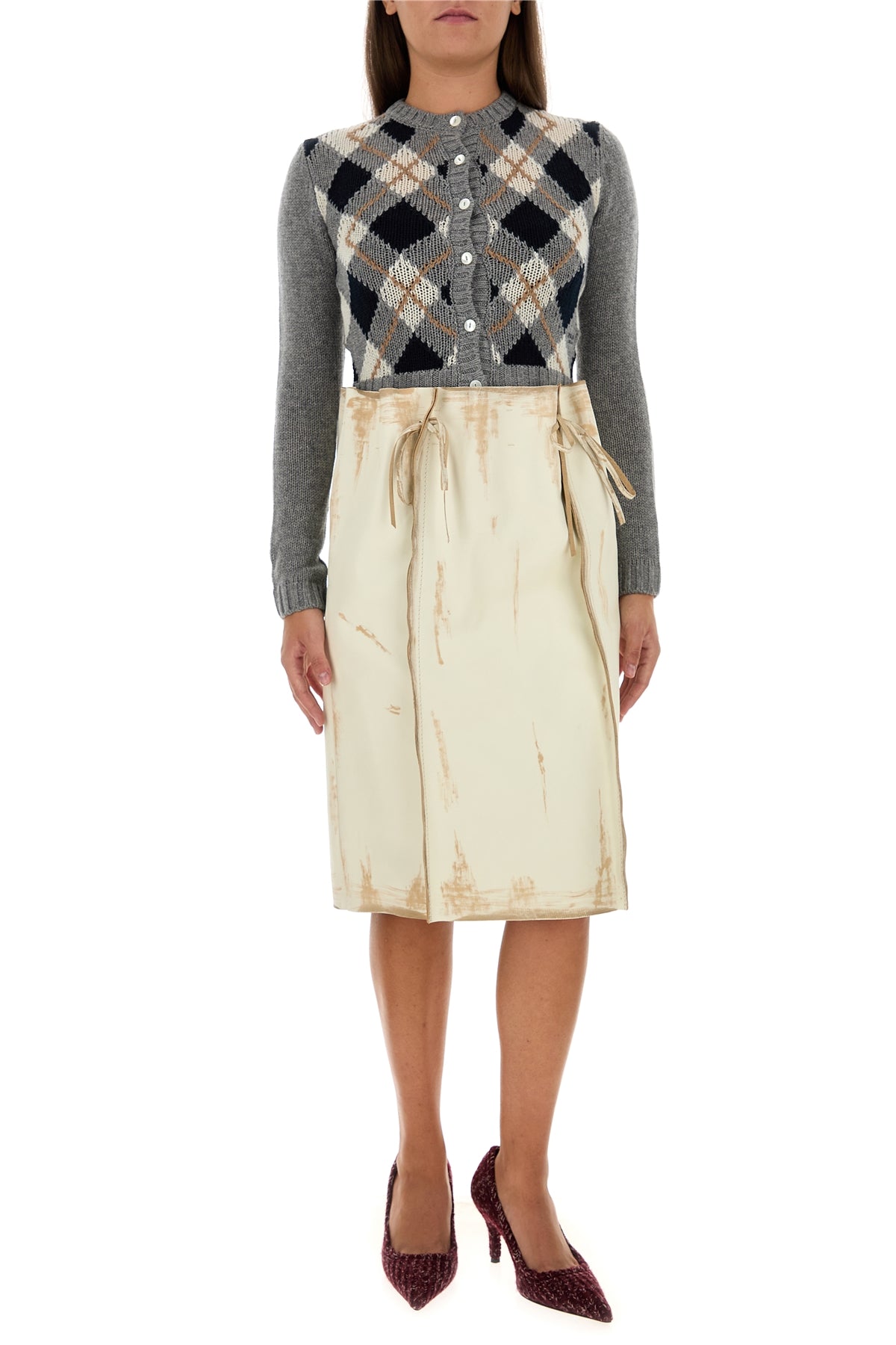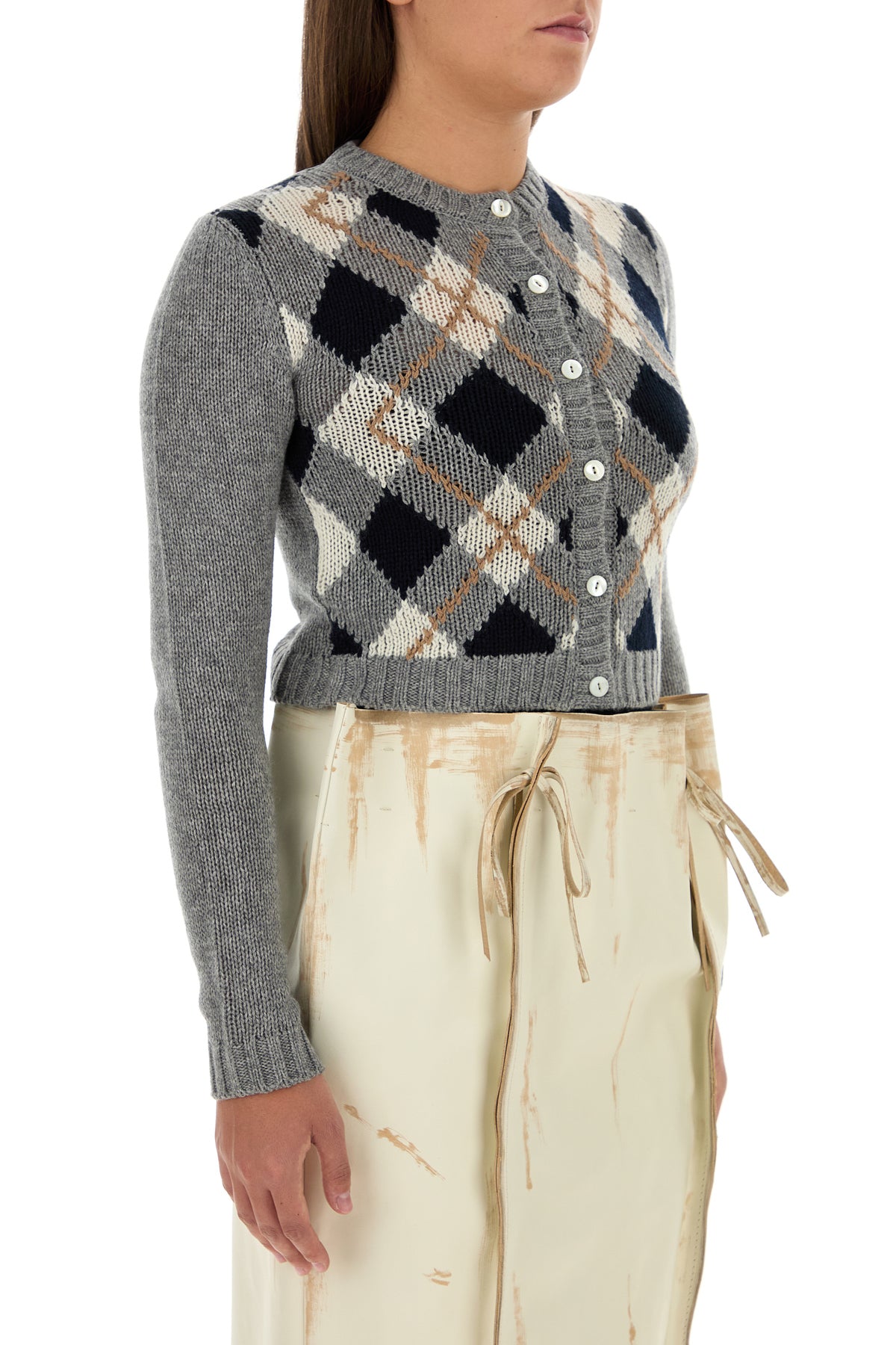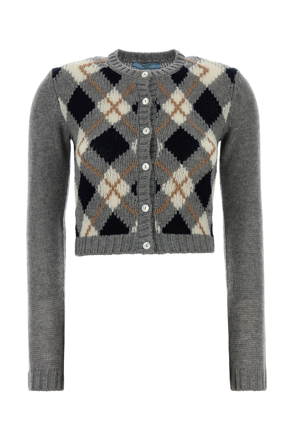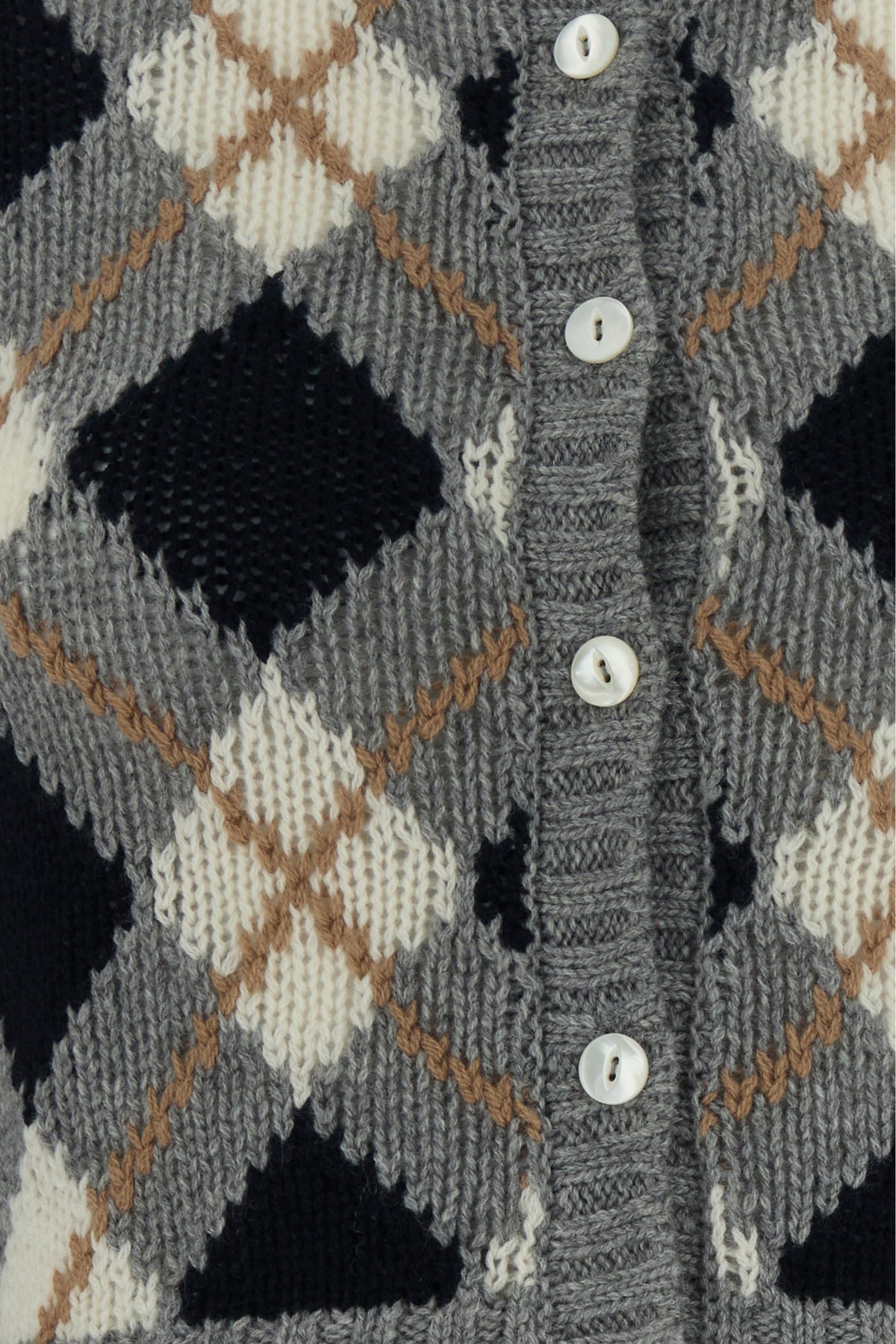Cardigan realized in pure cashmere characterized by checked embroidery at the front and embroidered logo on the hemline.