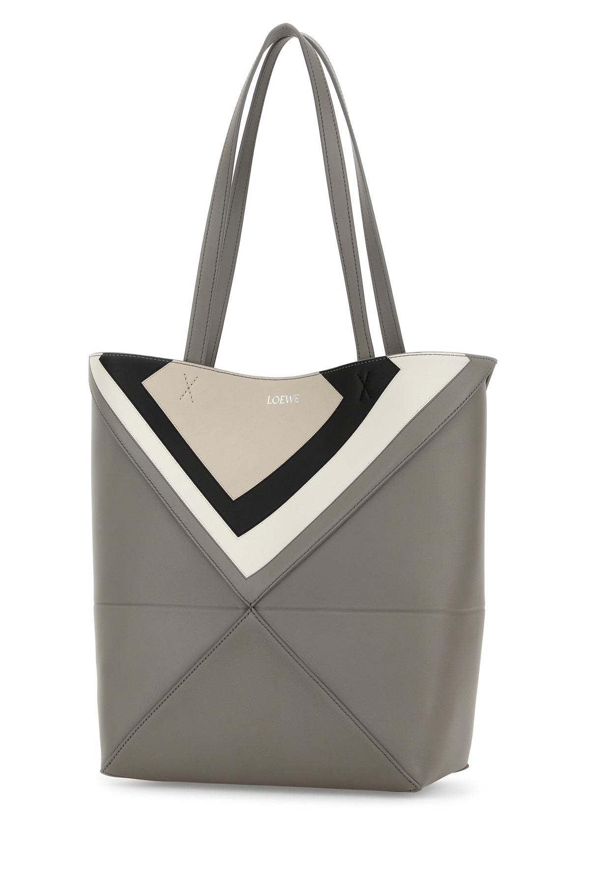 Grey leather Puzzle Fold shopping bag