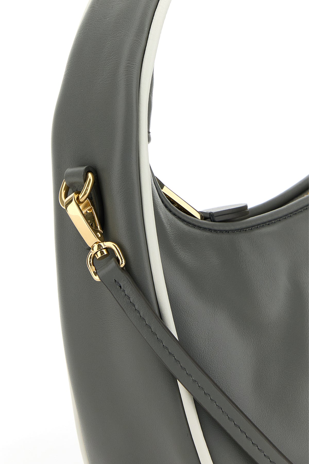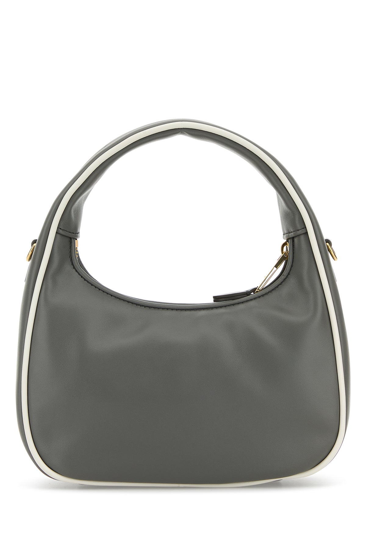 Handbag realized in smooth leather enriched by leather lettering logo at the front.
