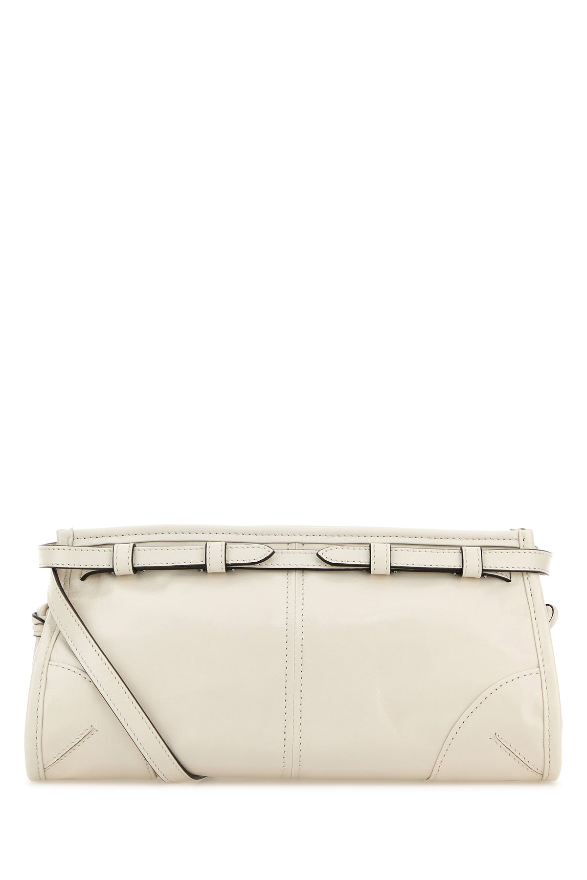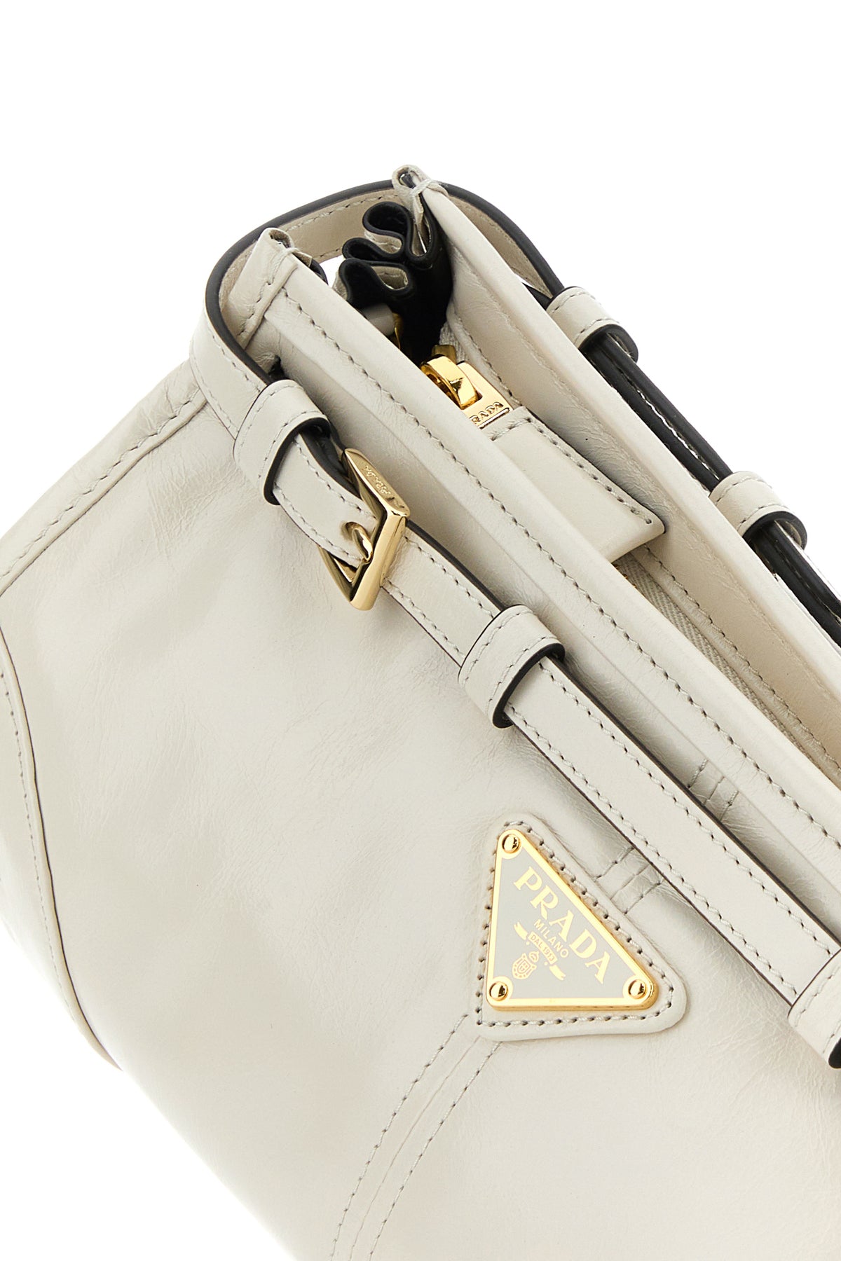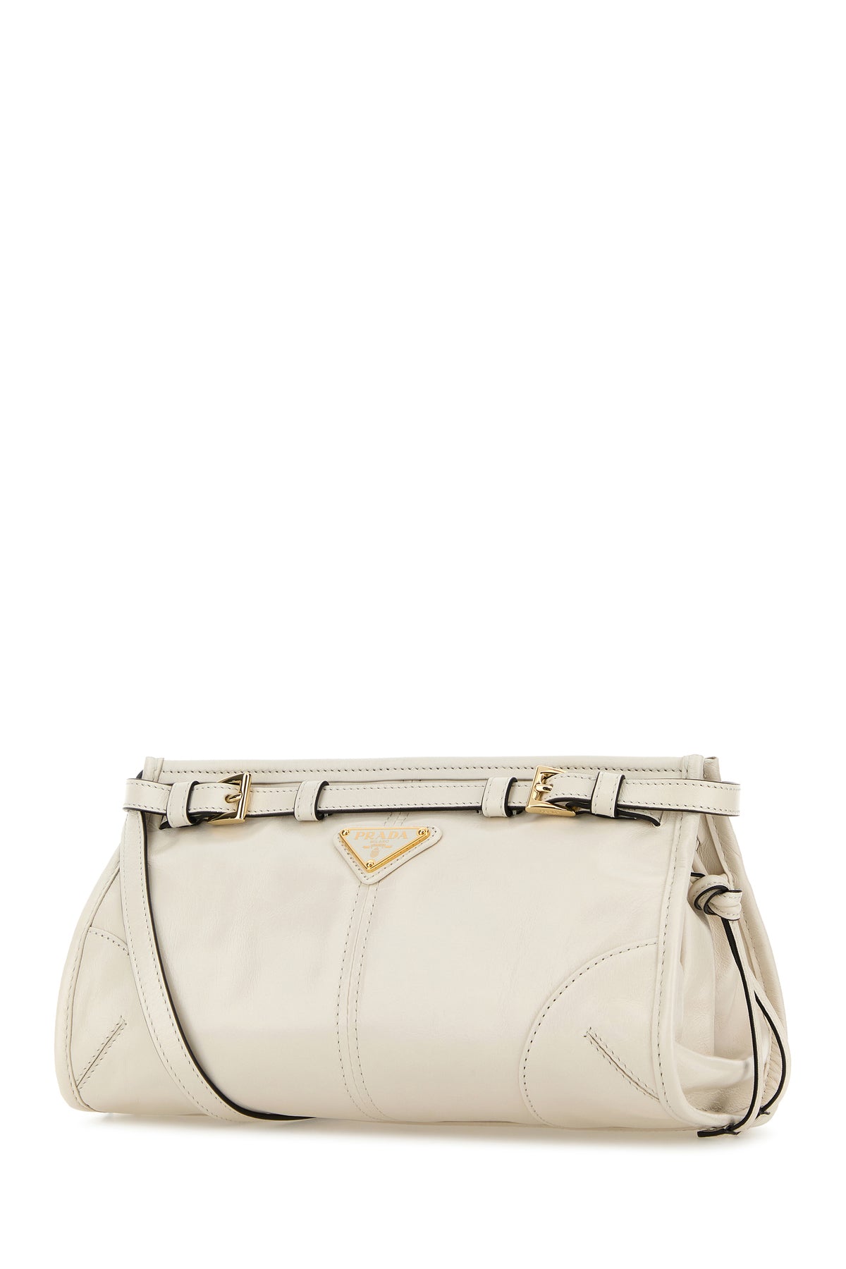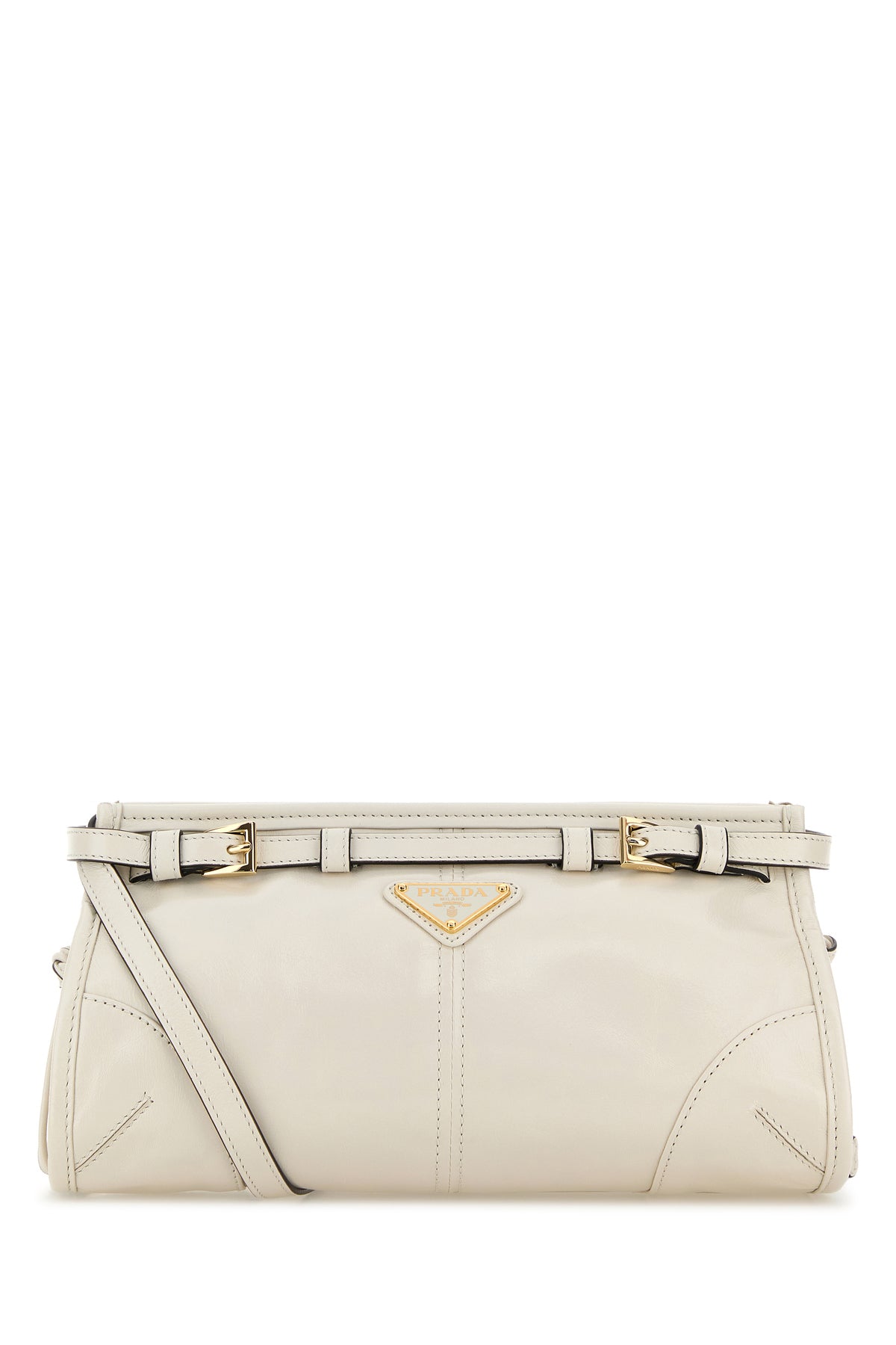 Crossbody realized in leather enriched by iconic logoed metal triangle at the front.