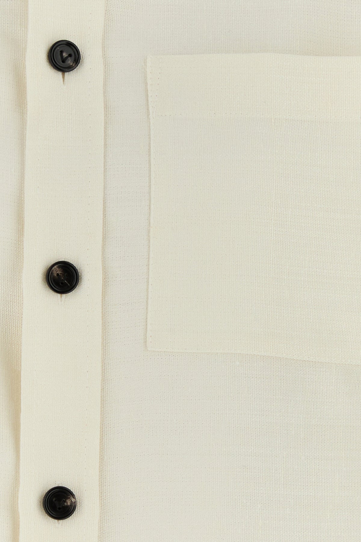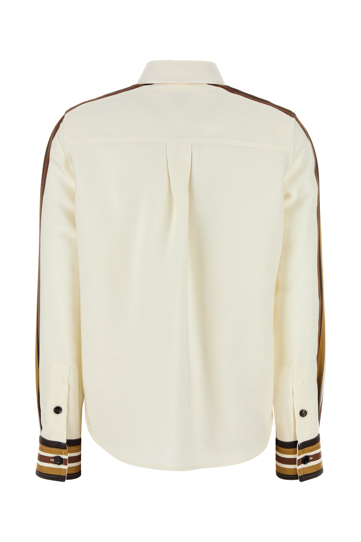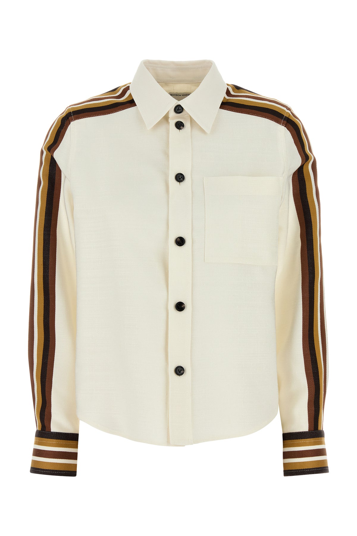 Shirt realized in viscose blend characterized by contrasting bands on the sleeves.