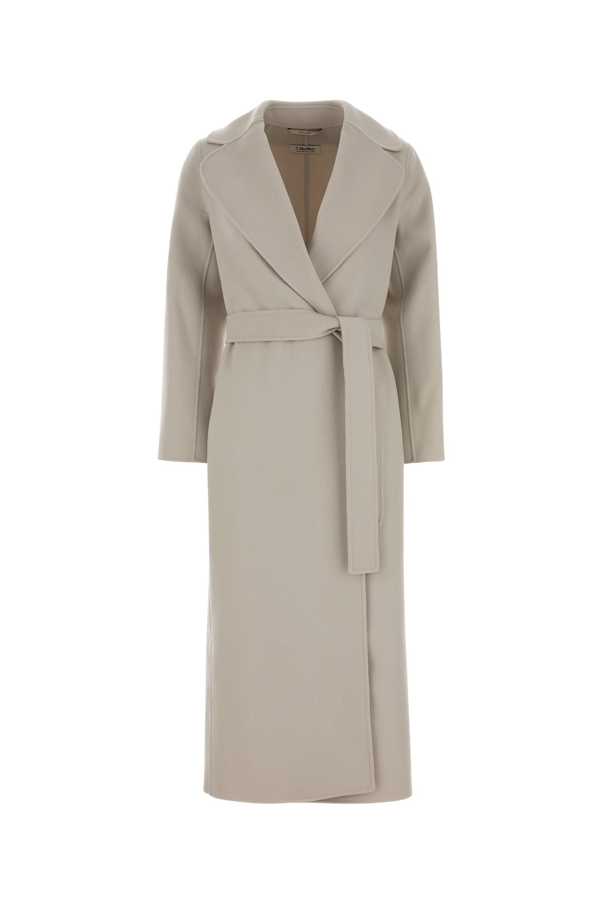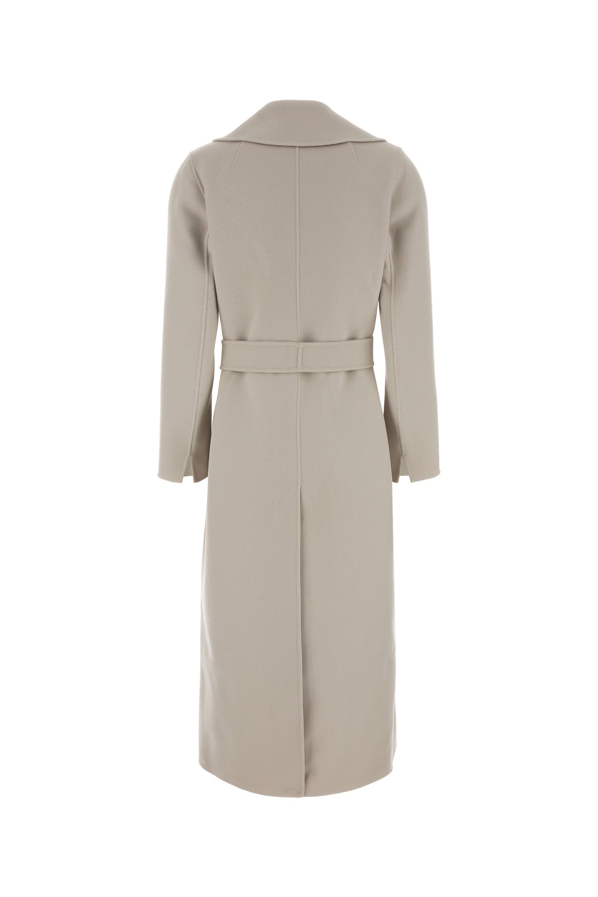 Coat realized in pure virgin wool characterized by belt to tie closure at the waist.