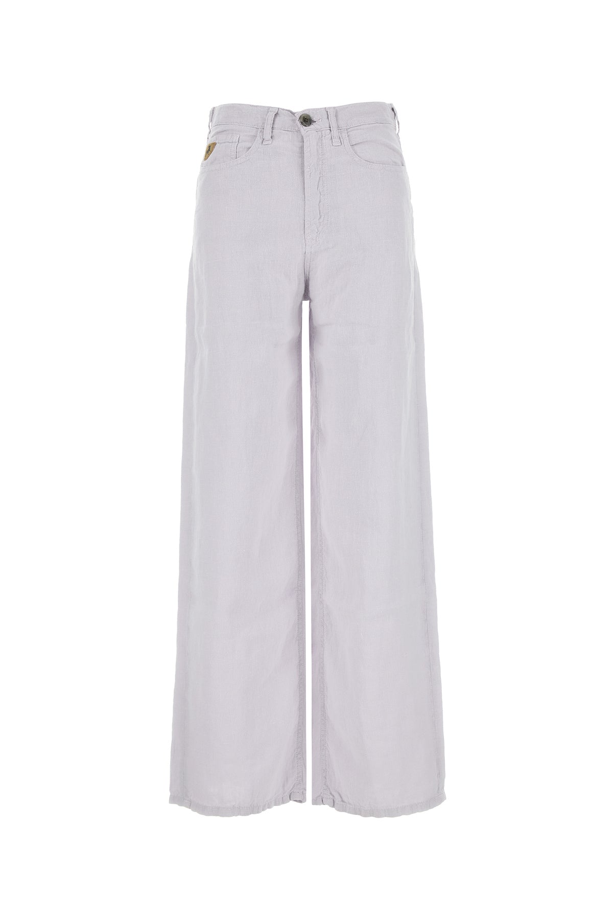 Wide-leg pant realized in pure linen enriched by logoed label at the front and at the back.